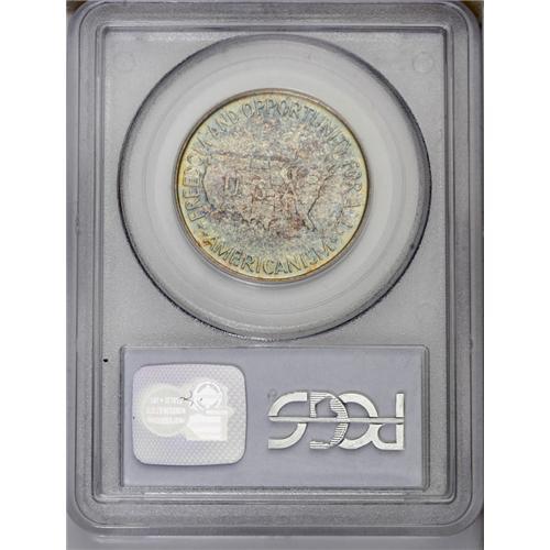 <B>1952<50C> Washington-Carver MS66 PCGS.</B></I> Well defined for the date with incredibly vibrant shades of lime-green, apricot, cobalt-blue, and purple patination on both sides. Luster is readily evident, even through the thick envelope of color. Worthy of inclusion in any commemorative enthusiast's collection. <BR><BR><B>Important notice:</B> Heritage usually auctions material at the rate of 200-250 lots per hour. On some occasions eBay Live bid software or the Internet may not be able to keep up with the pace of the auction. We recommend placing a realistic absentee bid now as insurance to avoid disappointment. Occasionally the auctioneer may eliminate or reject an eBay Live bid, and the auctioneer may also reopen a lot after the close of the eBay live bidding (usually because we missed an audience bid), and may reject your bid even if it shows you as the winning bidder. By bidding via eBay Live, you agree that Heritage may award the lot to another bidder at its sole discretion under the circumstances described above or any other reasonable circumstances. Since eBay bids are not shown to us until we open the lot on the floor, we treat those bids just like floor bids. In most cases the floor responds before the eBay bid is presented to us, due to Internet lag time, so for consistency we have made it a policy that floor bids are always considered first over tie eBay live bids. Also please note that all Heritage lots purchased through eBay Live carry a 20% Buyer's Premium. Please make sure you read the Terms and Conditions before you bid. This lot is being auctioned in conjunction with a live floor auction by Heritage Galleries & Auctioneers. All final auction and invoice information will be supplied by Heritage Galleries & Auctioneers, and all other information should be considered preliminary. Lot:5136 <BR><BR><B>Winning Notification and Billing:</B> After the FINAL session in this auction is complete, Heritage will send e-mail and snail mail invoices. This process normally takes several days. All final auction and invoice information will be supplied by Heritage Galleries & Auctioneers, and all other information should be considered preliminary. <BR><BR>This auction will be conducted on a live auction floor and over the Internet through eBay Live. If you choose to place an absentee bid, please take a moment to <font color='#0000ff'><u><a href='http://pages.ebay.com/liveauctions/help/before/laabsentee.html'>learn how eBay Live absentee bidding works</a></u></font><font color='#000000'>