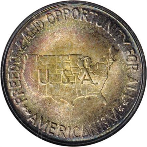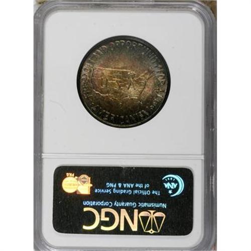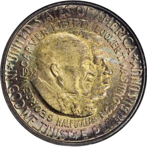 <B>1952 50C Washington-Carver MS67 NGC.</B></I> Despite the common date status, this is an elusive Superb Gem, one of just 12 similar examples certified by NGC, with none finer (6/07). The 1952 is undoubtedly the most plentiful of all Carver half dollars. Both sides are intensely and deeply toned with gold, lilac, sea-green, and steel toning.<BR><BR><b>Shipping:</b> Coins & Currency (<a target="_blank" href="http://www.heritageauctions.com/common/shipping.php">view shipping information</a>)