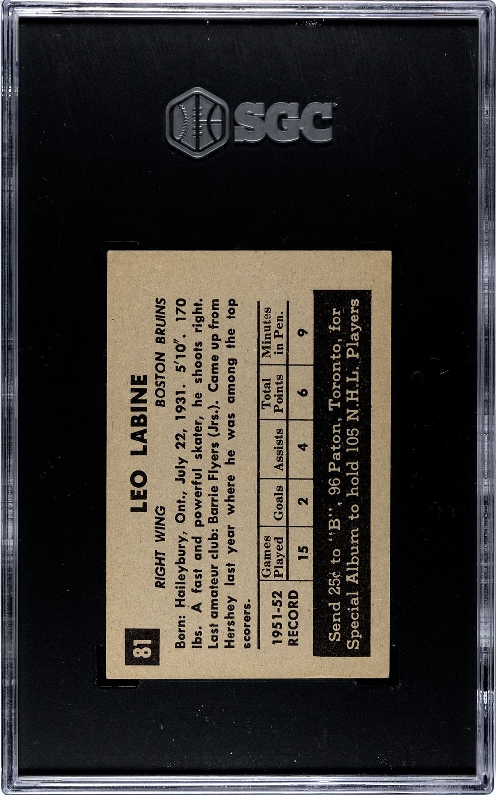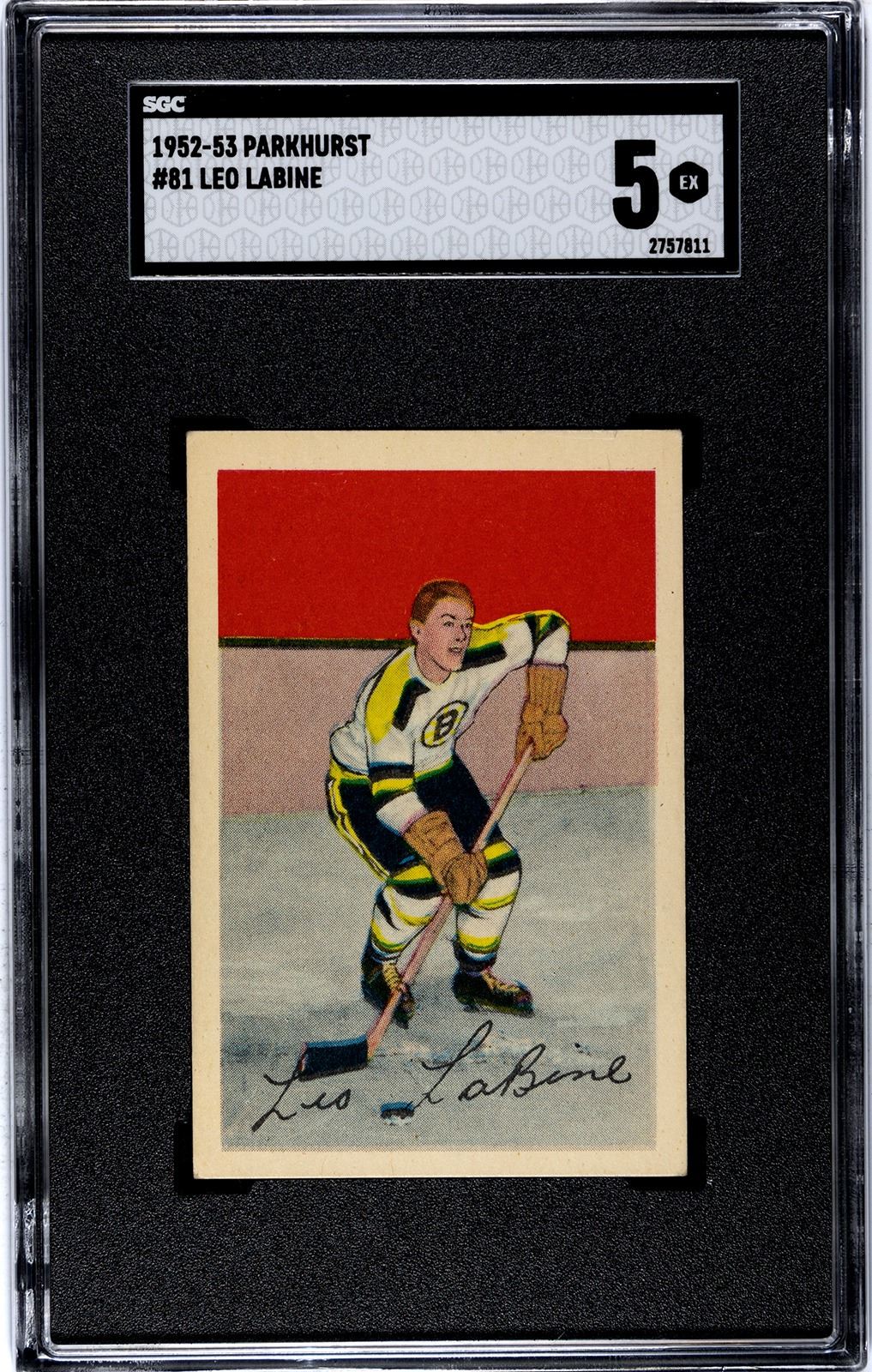 Rookie card of the Bruins hard hitting forward who played 643 NHL games and over 330 more in the old competitive WHL. Graded 5 EX by SGC.