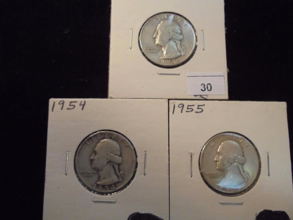 1952,54 & 55 WASHINGTON SILVER QUARTERS