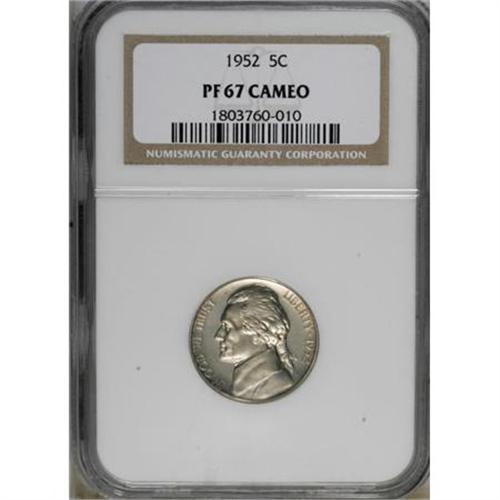 <B>1952 5C PR67 Cameo NGC.</B></I> NGC Census: (91/83). PCGS Population (111/14). Numismedia Wsl. Price for NGC/PCGS coin in PR67: $165. (#84184)<BR><BR><b>Shipping:</b> Coins & Currency (<a target="_blank" href="http://www.heritageauctions.com/common/shipping.php">view shipping information</a>)