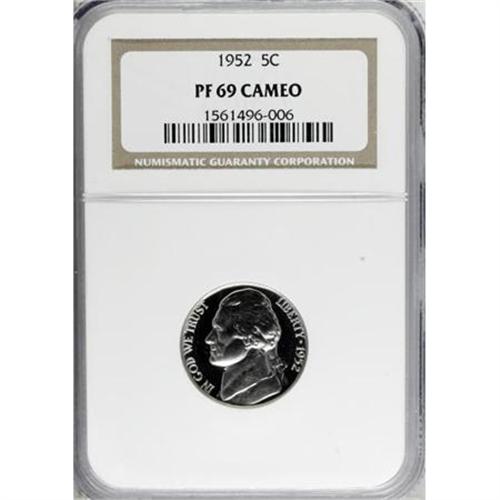 <B>1952 5C PR69 Cameo NGC.</B></I> NGC Census: (15/0). PCGS Population (0/0). (#84184)<BR><BR><b>Shipping:</b> Coins & Currency (<a target="_blank" href="http://www.heritageauctions.com/common/shipping.php">view shipping information</a>\)