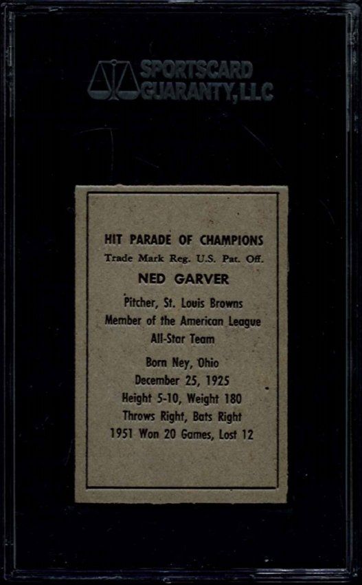 1952 Berk Ross Ned Garver Baseball Card SGC 80 or 6
