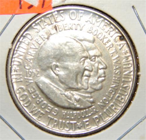 1952 CARVER/WASHINGTON HALF DOLLAR. Depicts side profiles of George W. Carver and Booker T. Washington.