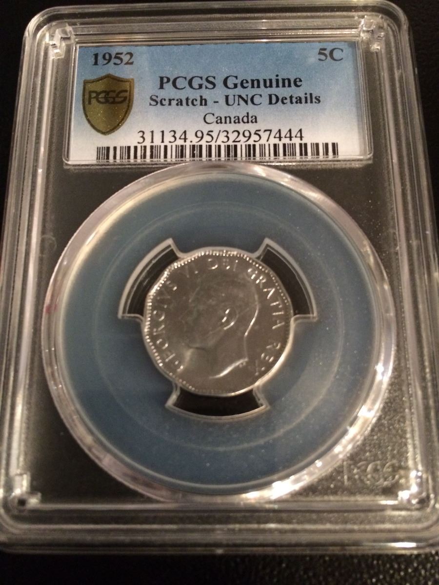 1952 Canada 5 Cent PCGS UNC (Scratch)