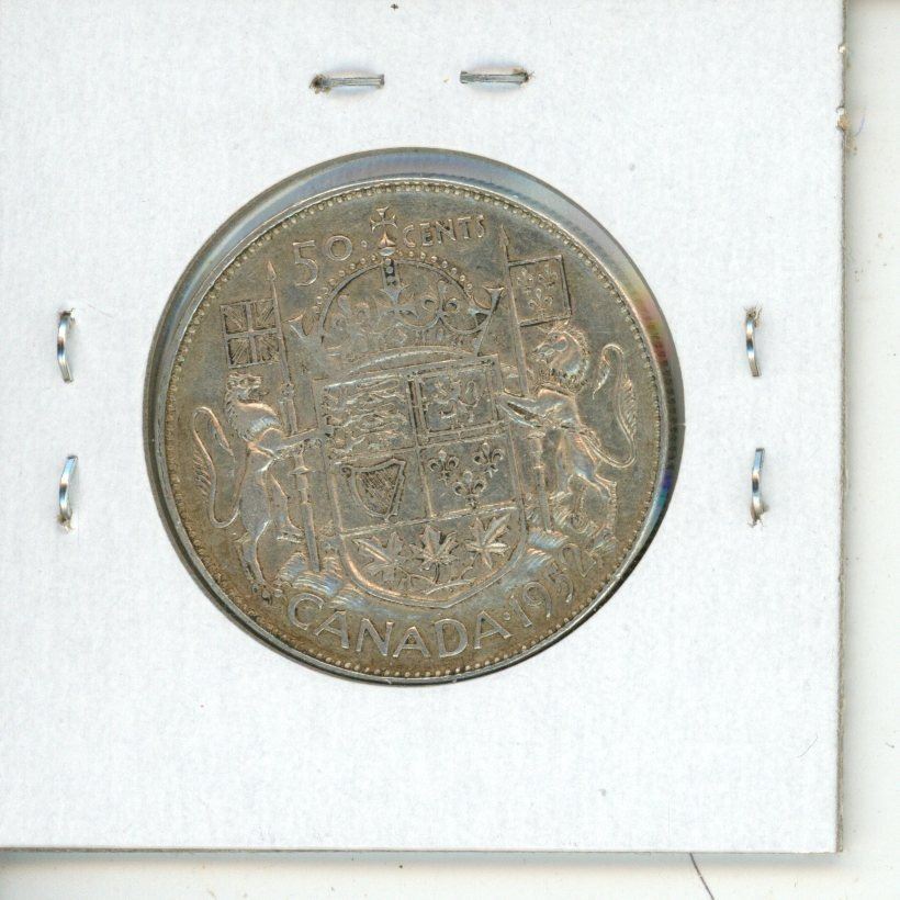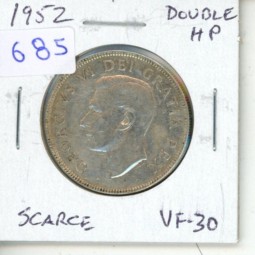 1952 Canadian Silver 50 Cents. Doubled HP on the obverse. VF-30. Scarce.