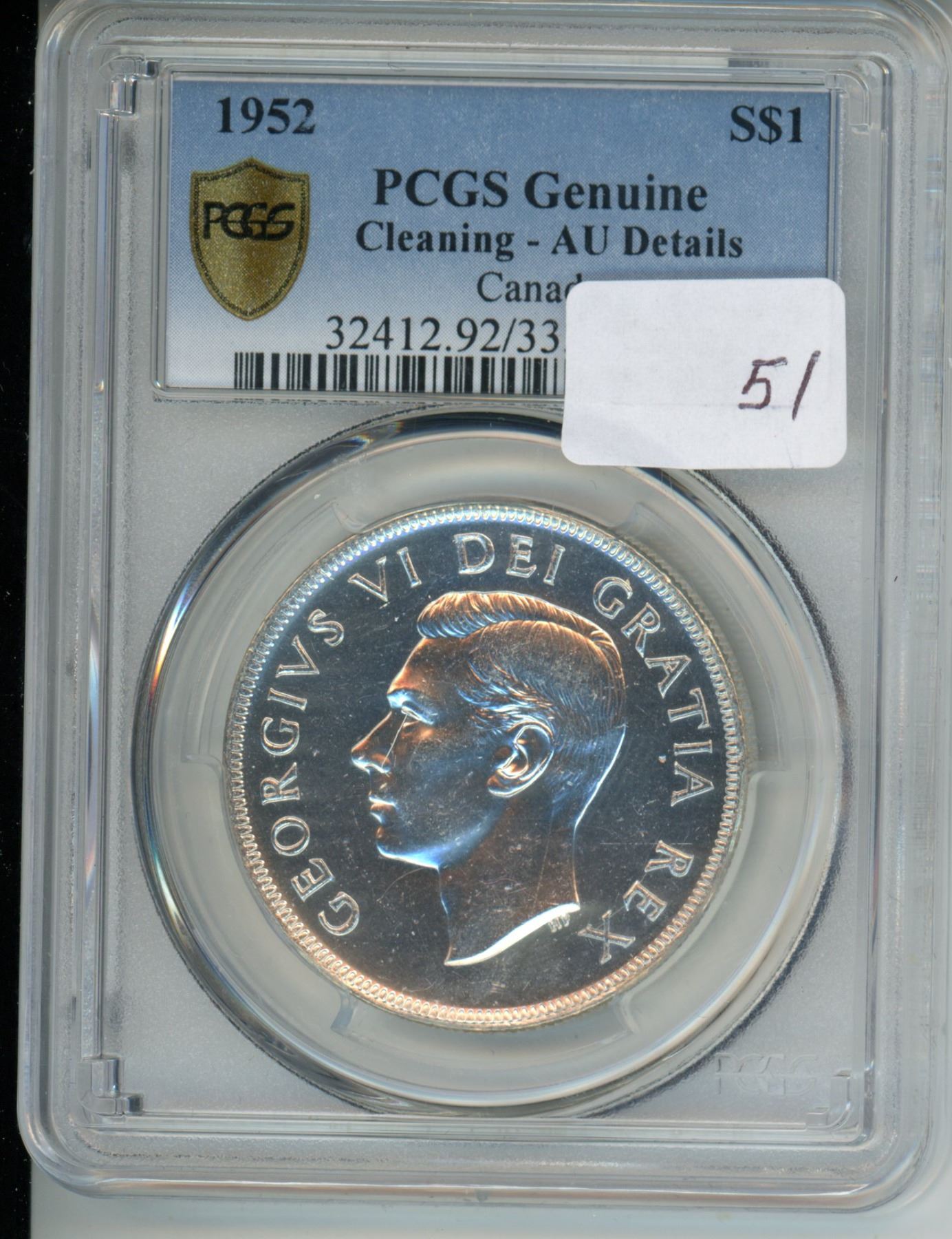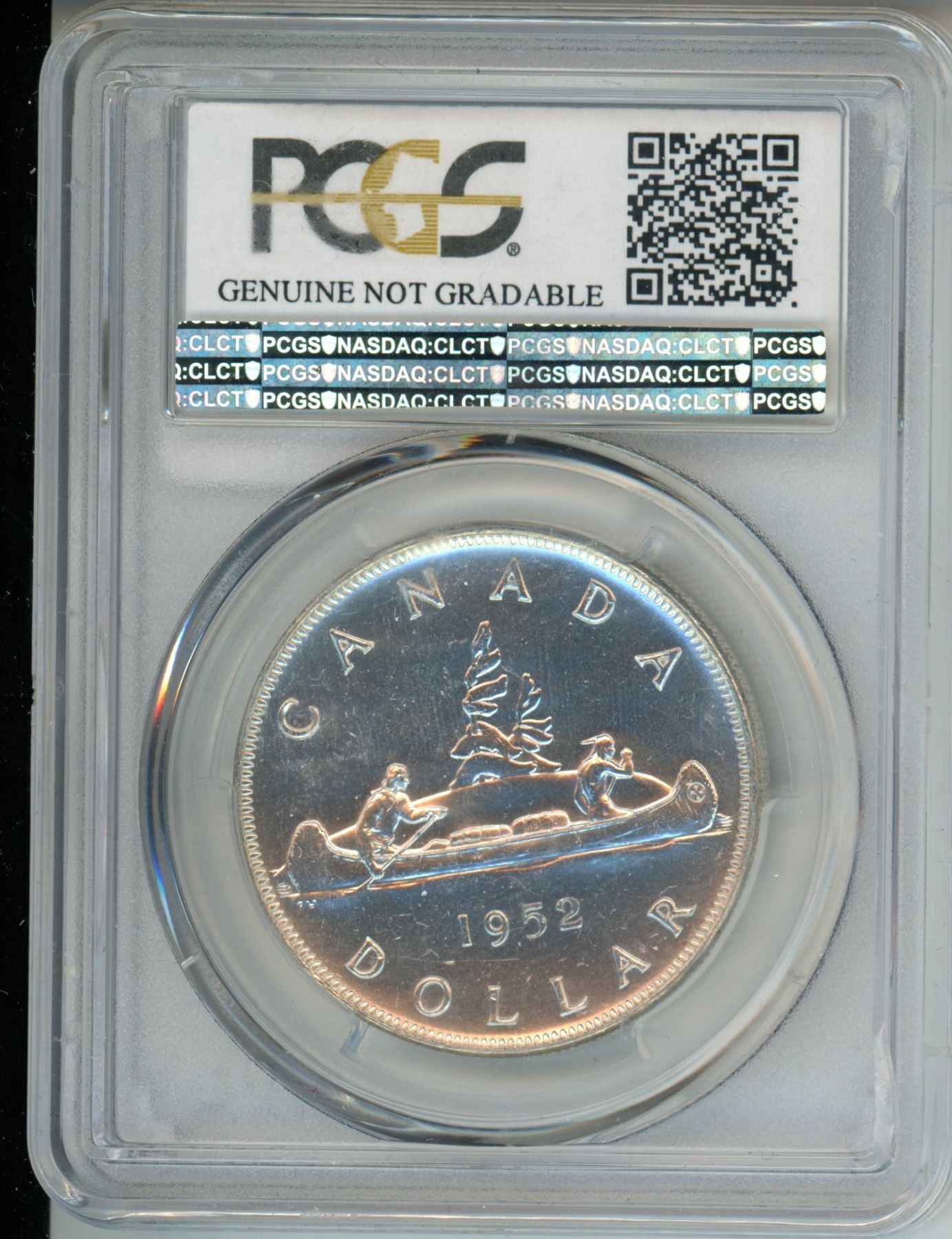 1952 Canadian silver dollar, in plastic container - PCCS graded