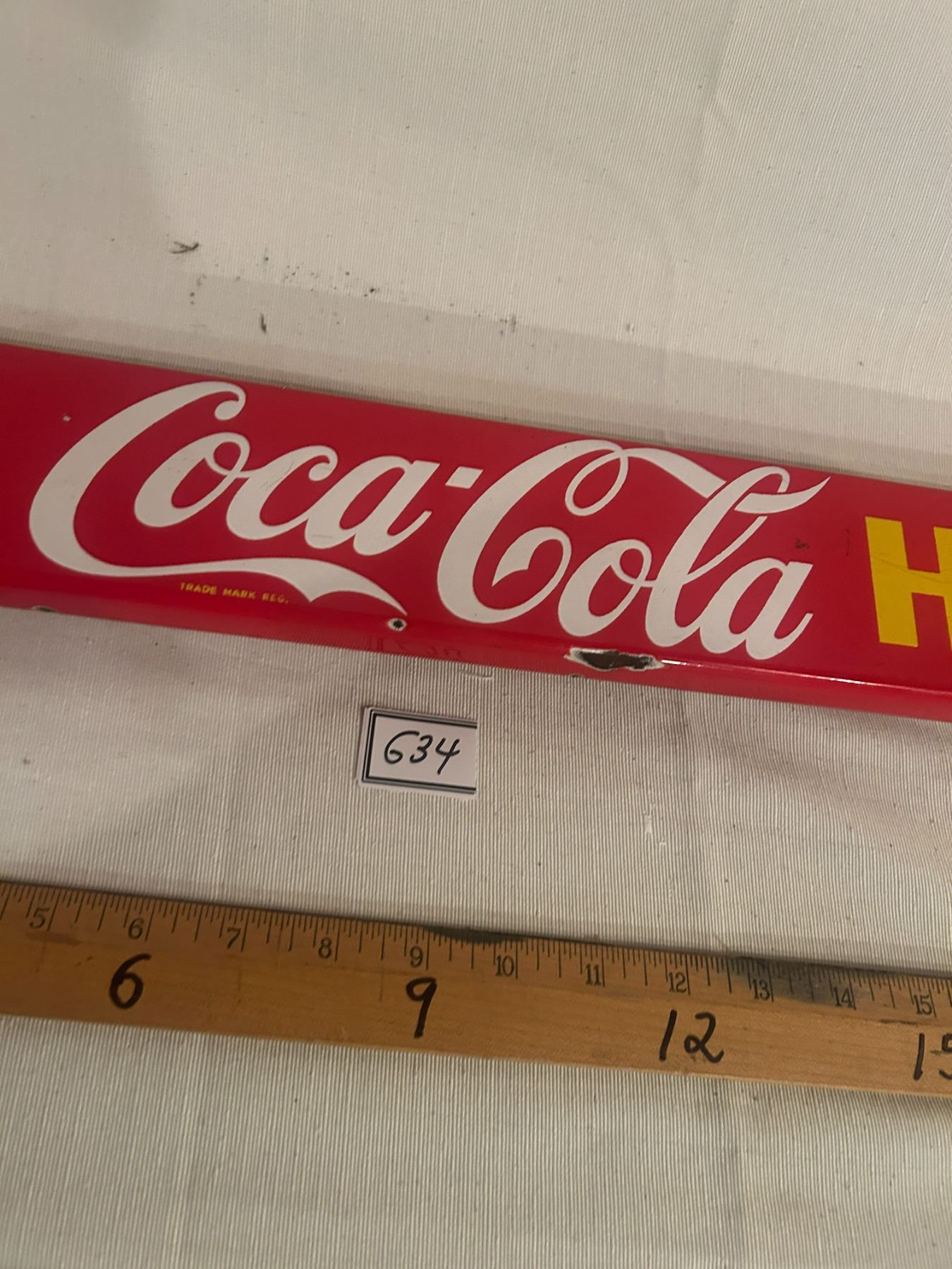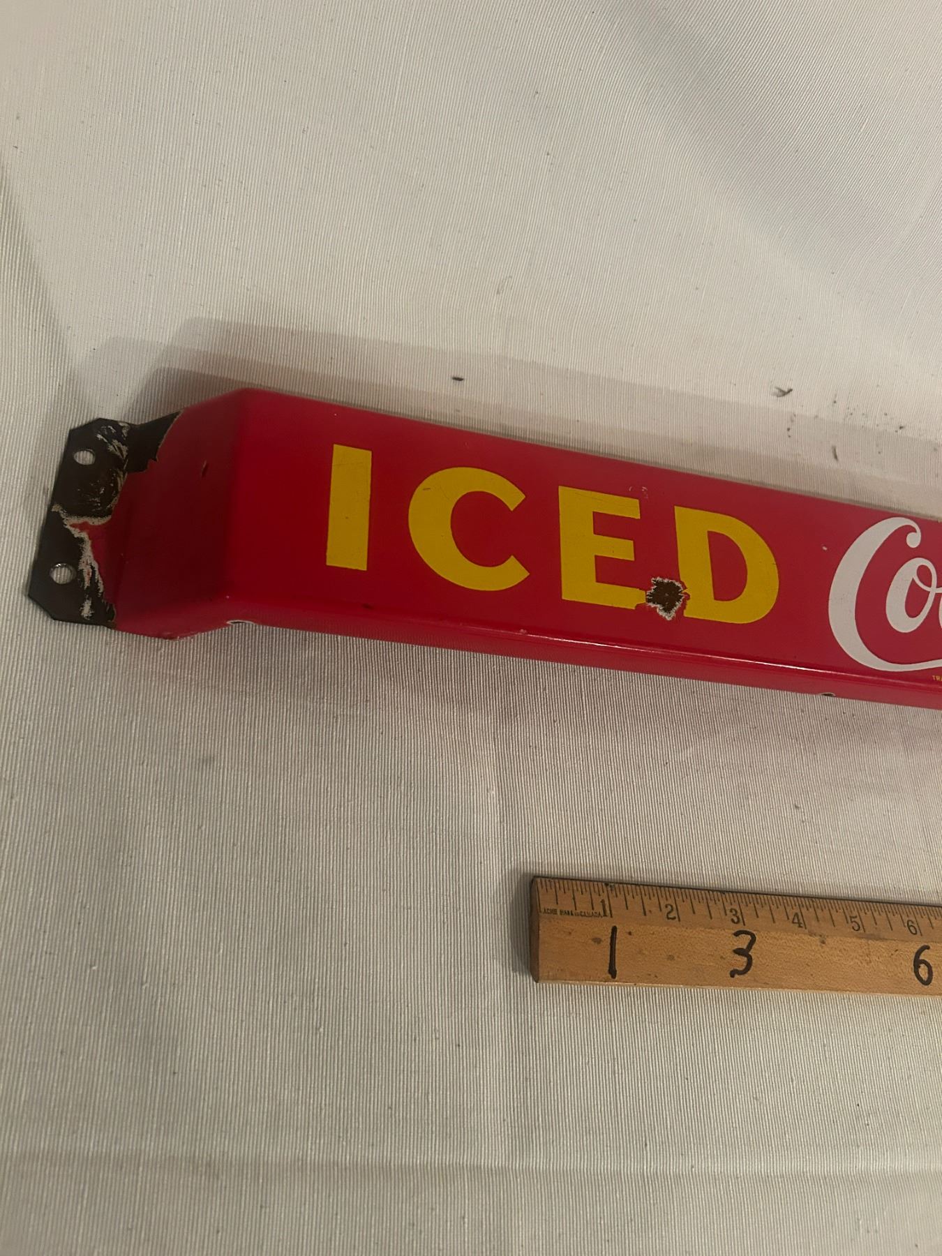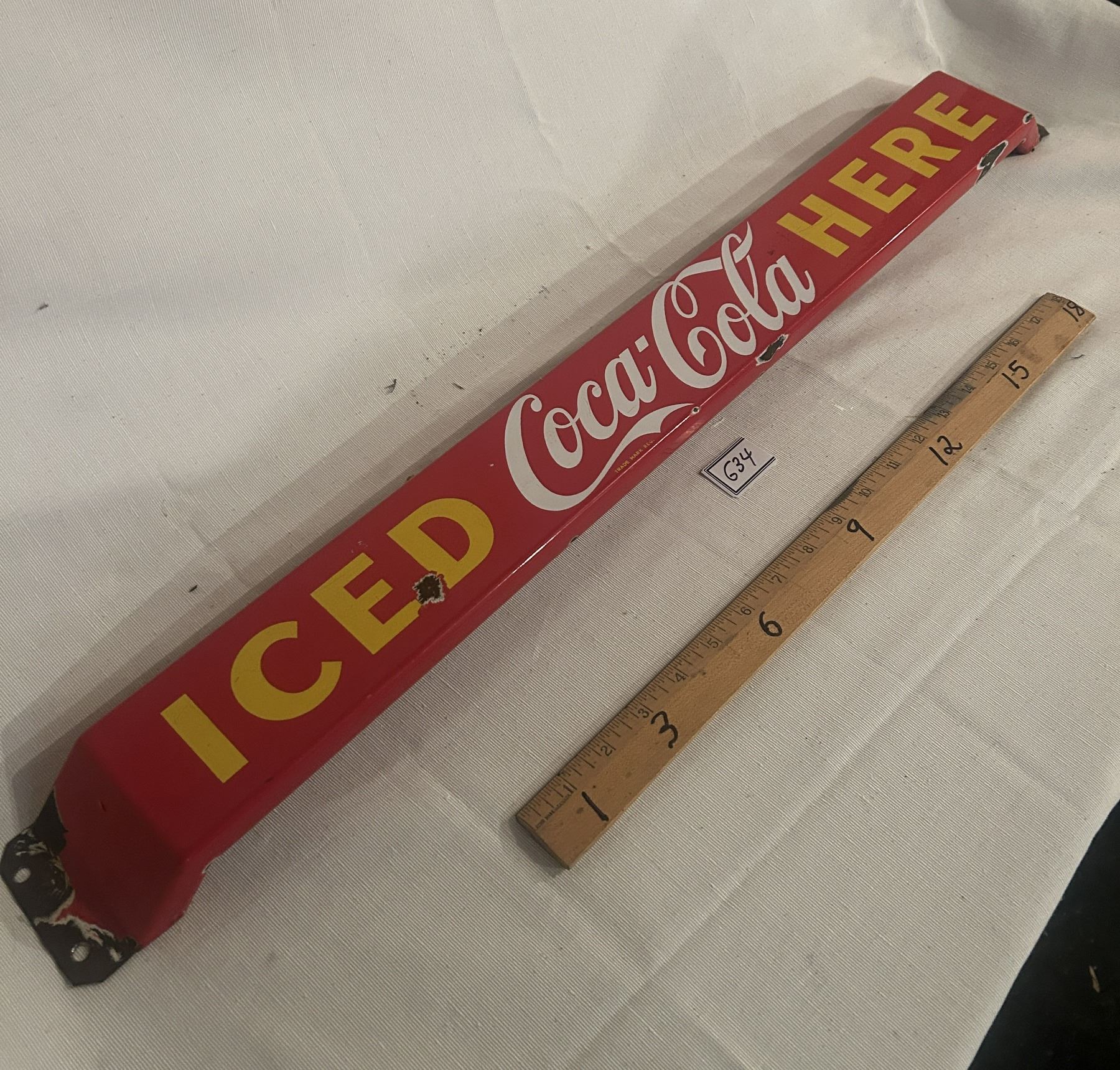 1952 Coca-Cola porcelain door push - original, 31"x2-3/4"