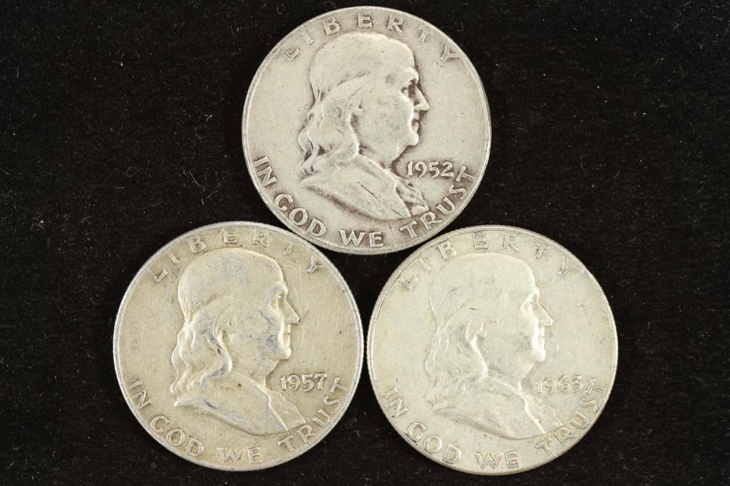 1952-D,57-D & 63-D FRANKLIN HALF DOLLARS