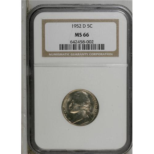 1952-D 5C MS66 NGC. NGC Census: (314/82). PCGS Pop