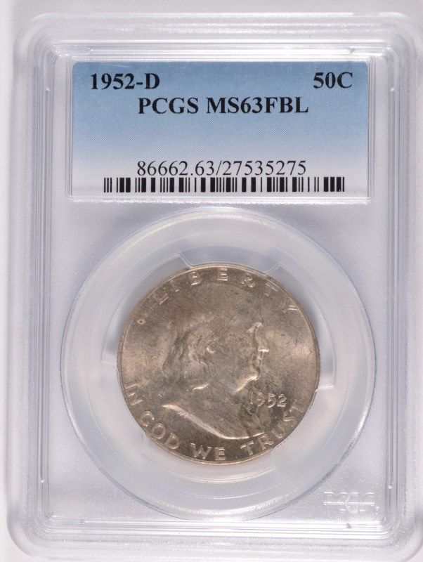1952-D FRANKLIN HALF DOLLAR, PCGS MS-63 FBL