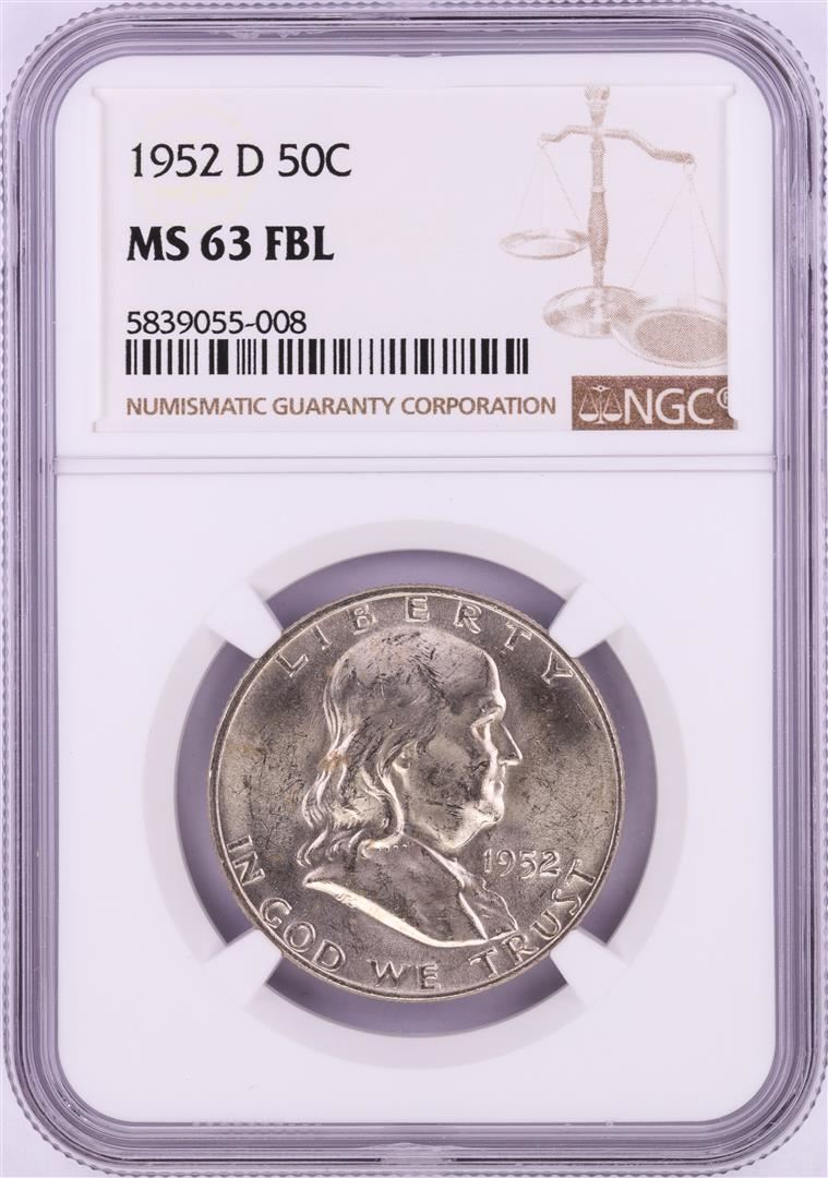 One 1952-D Franklin Half Dollar Coin NGC MS63FBL. NGC Certified.