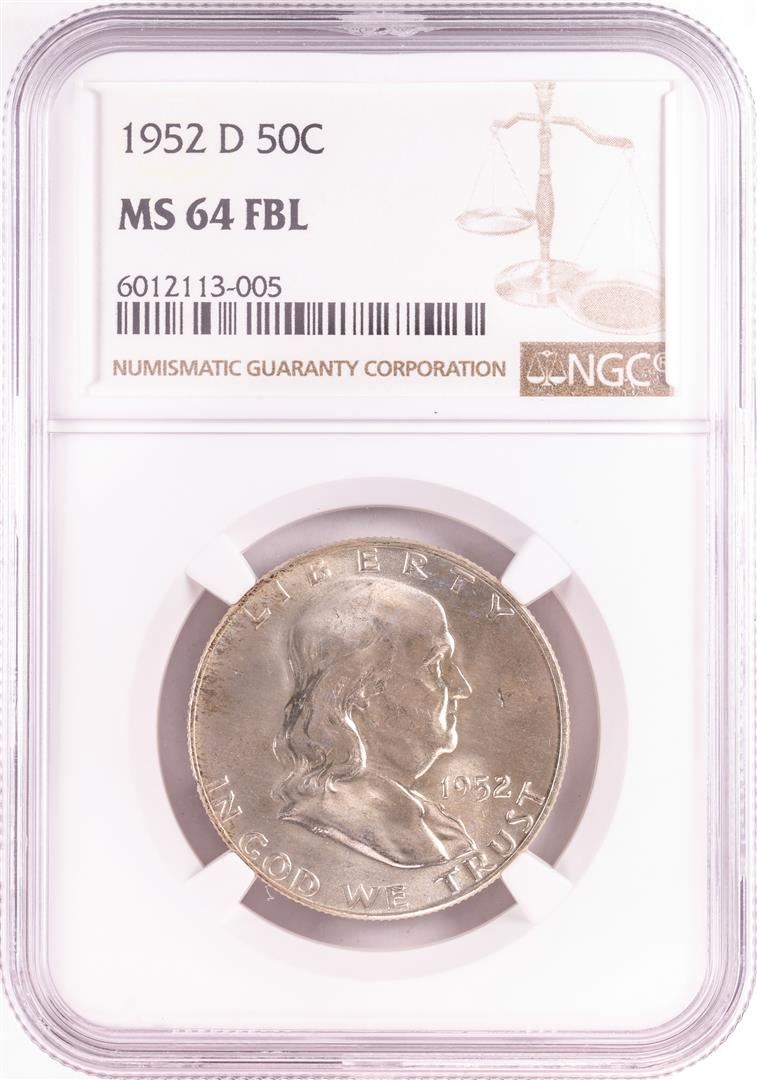 One 1952-D Franklin Half Dollar Coin NGC MS64FBL. NGC Certified.