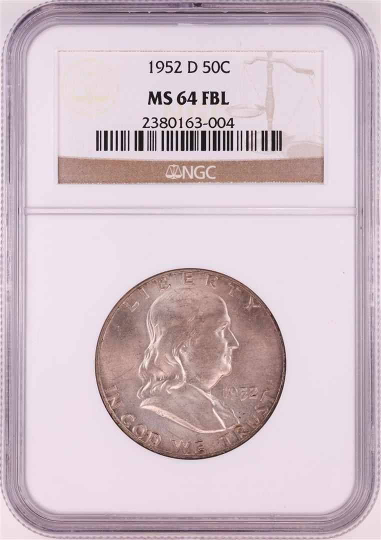 One 1952-D Franklin Half Dollar Coin NGC MS64FBL. NGC Certified.