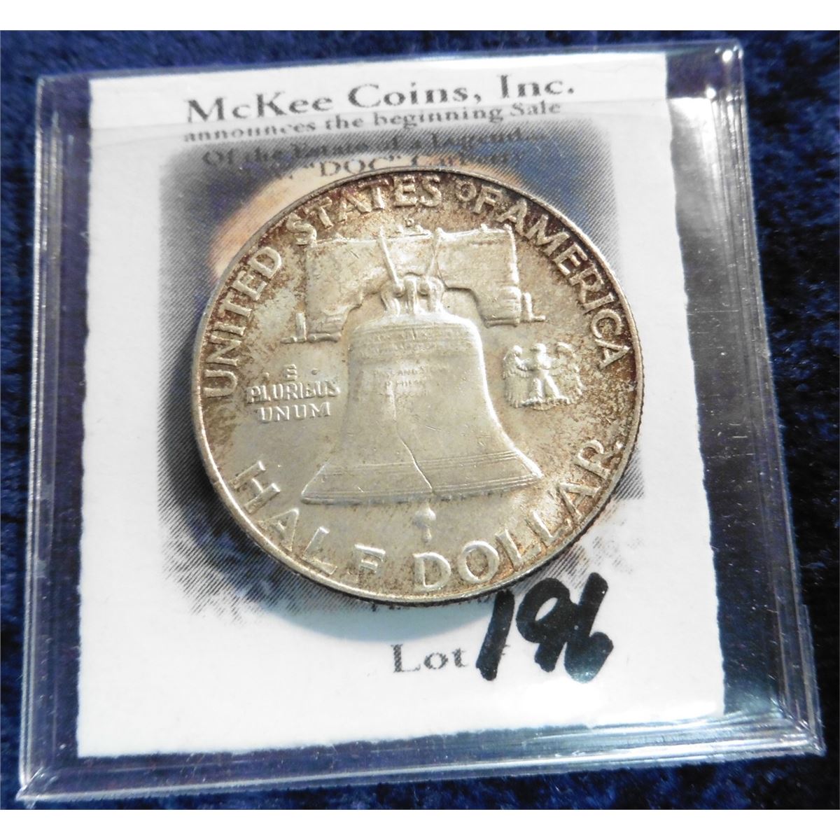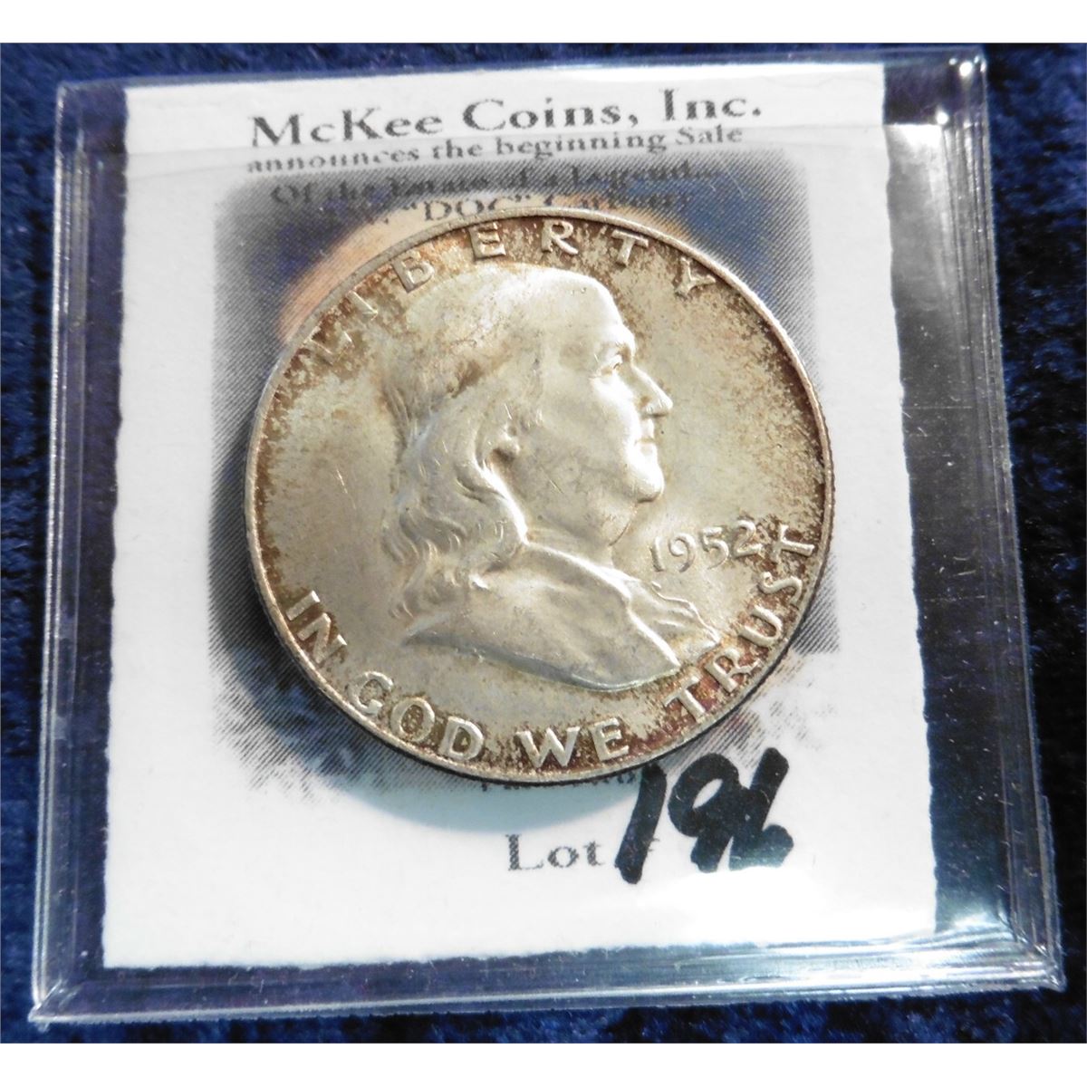 1952 D Franklin Half-Dollar. Moderate toned Unc.