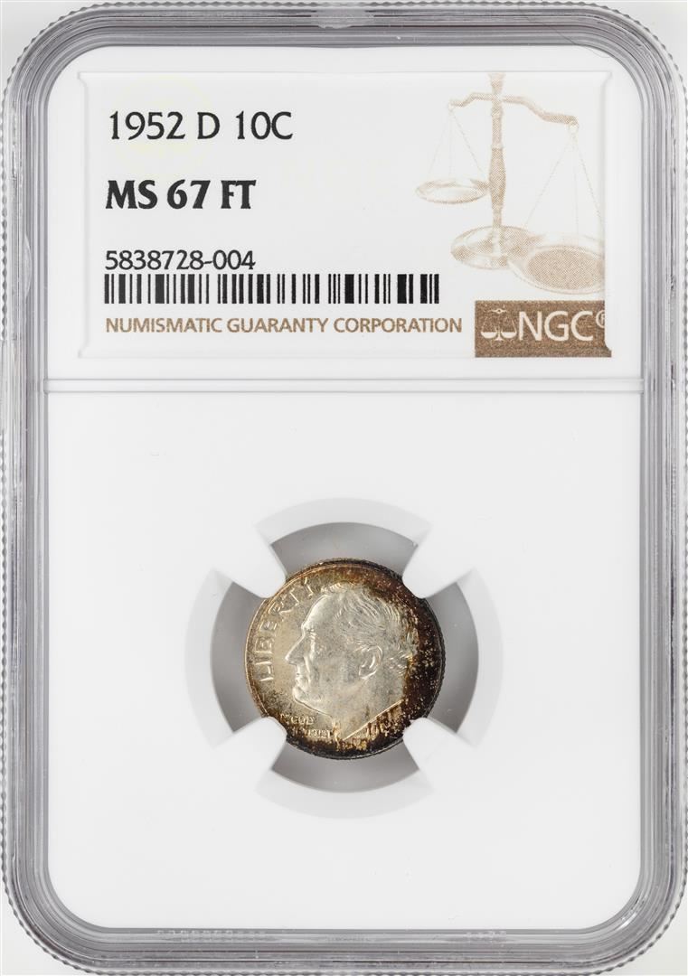 One 1952-D Roosevelt Dime Coin NGC MS67FT. NGC Certified.