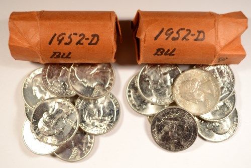 1952-D WASHINGTON QUARTER ROLL, ( 40 ) COINS, MS-64-65-66 GEM BU COINS
