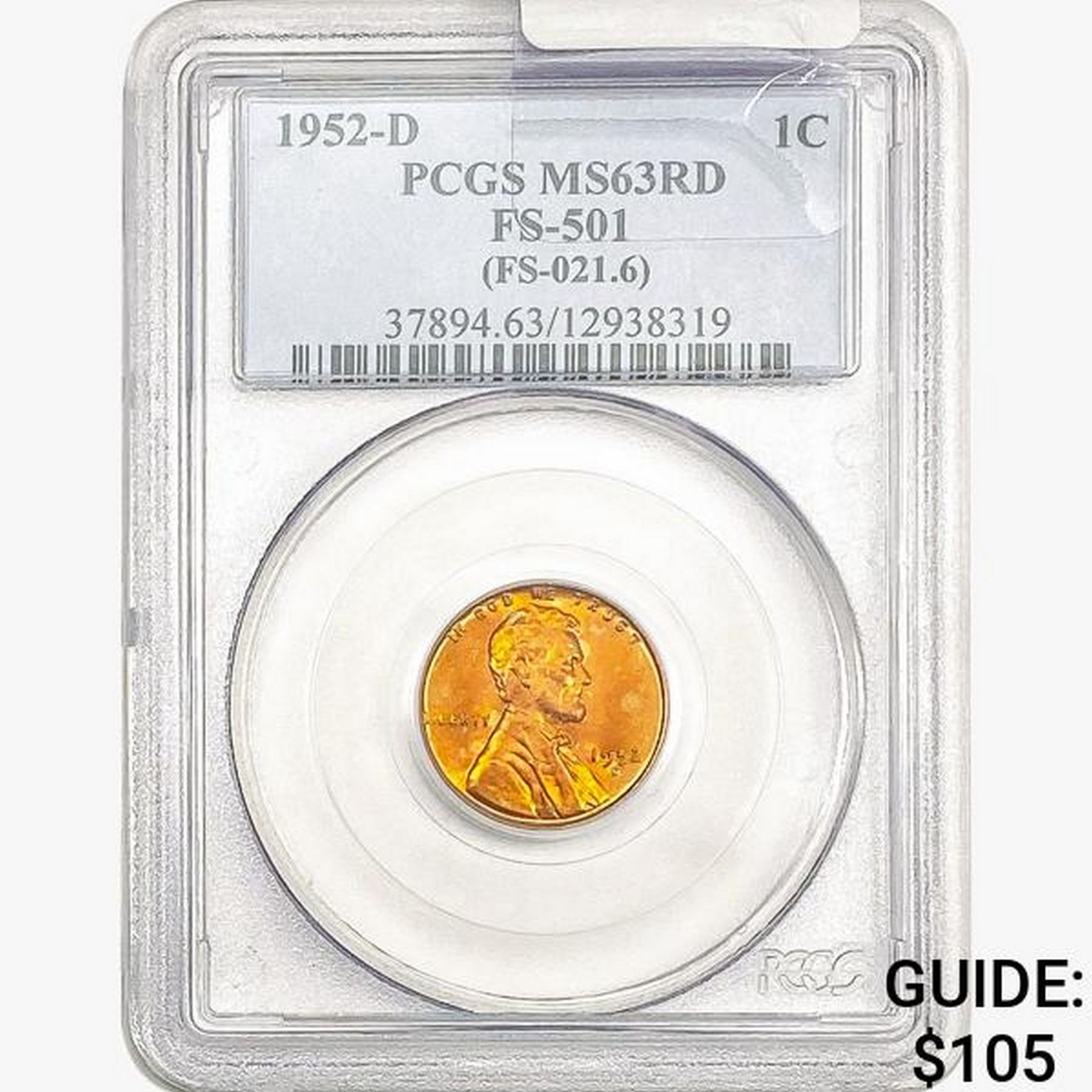 1952-D Wheat Cent PCGS MS63 RD FS-501