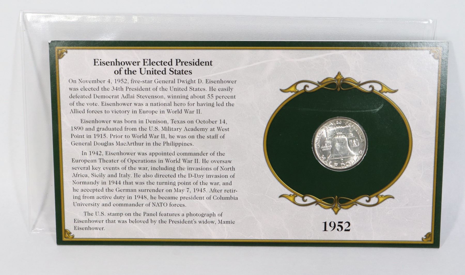 DISPLAYED ON A PANEL WITH FASCINATING INFORMATION ABOUT A MAJOR EVENT THAT TOOK PLACE IN THE COINS YEAR OF ISSUE AS WELL AS A MINT CONDITION US POSTAGE STAMP RELATING TO THE EVENT