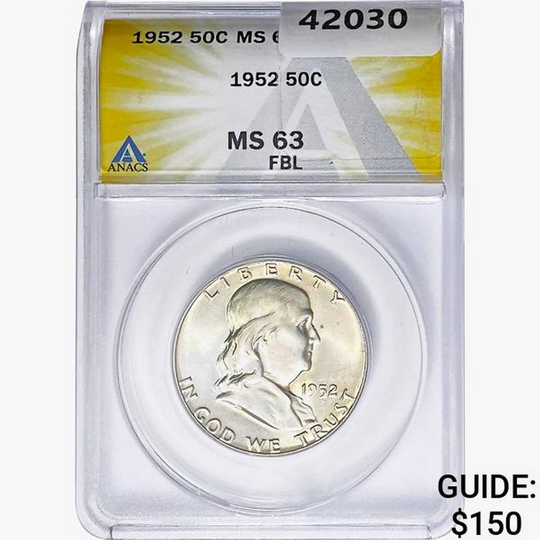 1952 Franklin Half Dollar ANACS MS63 FBL