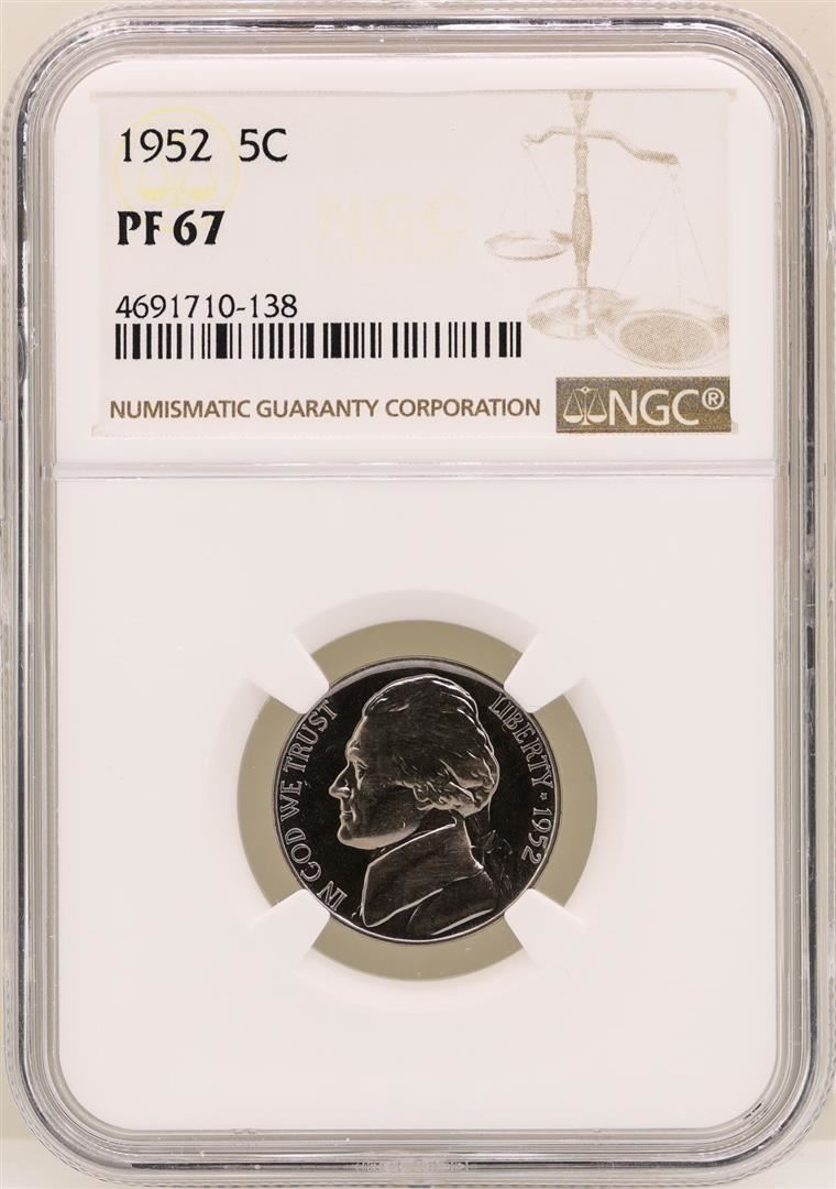 One 1952 Jefferson Nickel Proof Coin NGC PF67. NGC Certified.