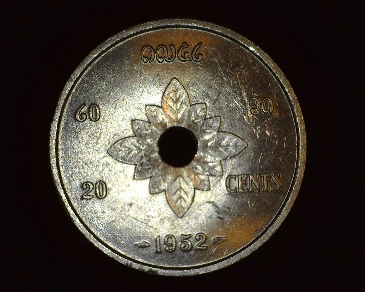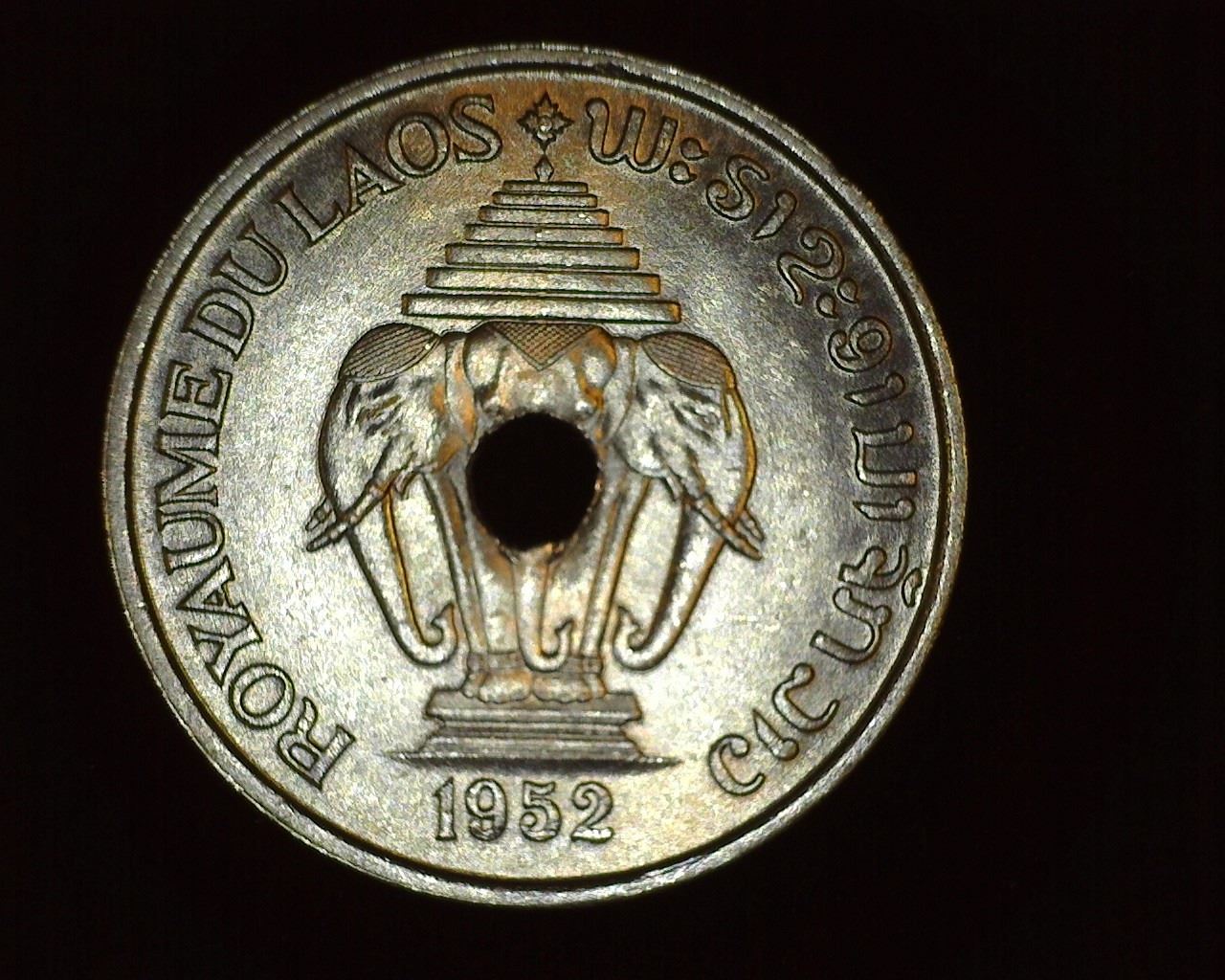 1952 Laos 20 Cent Piece, Brilliant uncirculated. Depicts an Elephant.