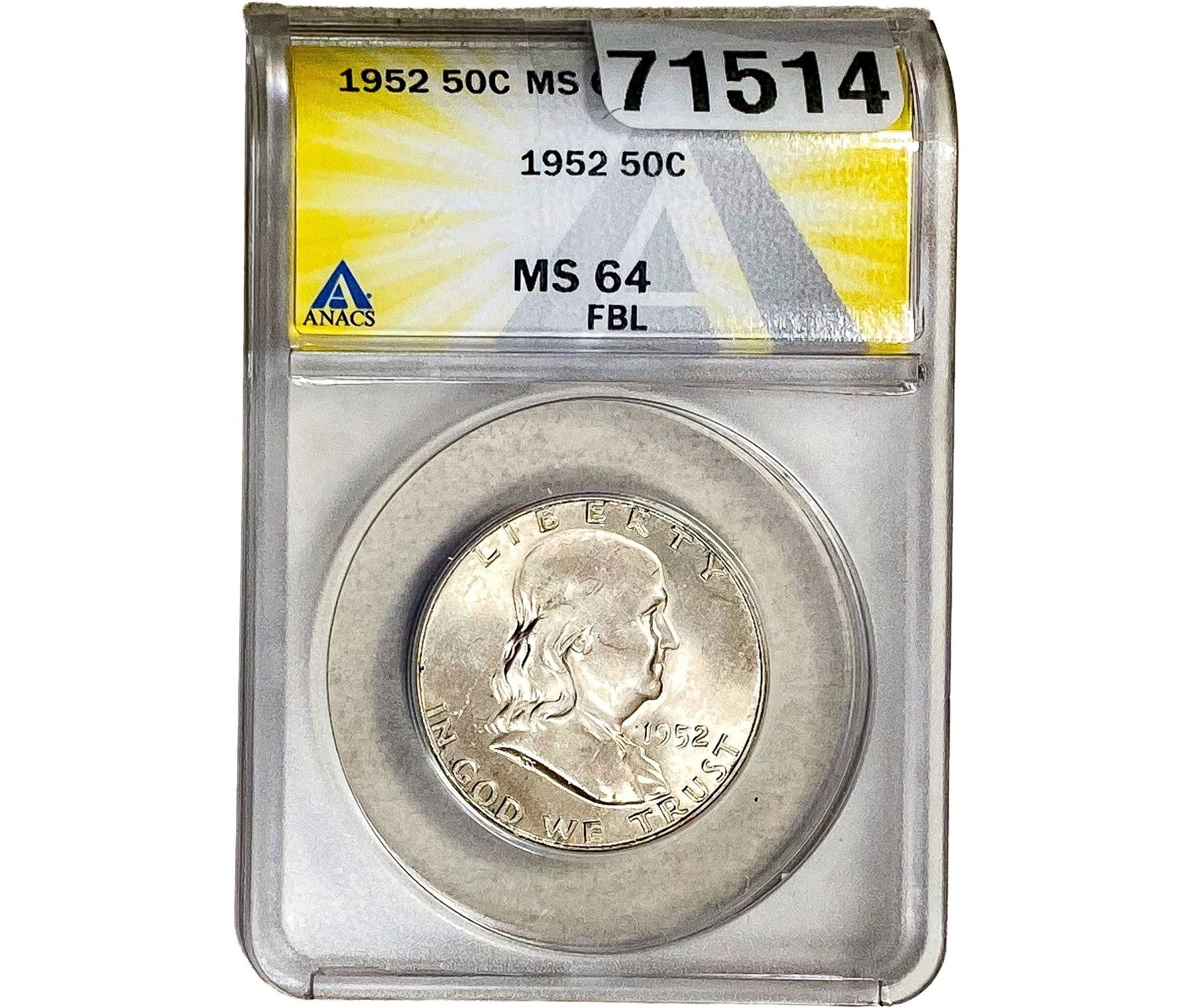 1952 Morgan Silver Half Dollar ANACS MS64 FBL
