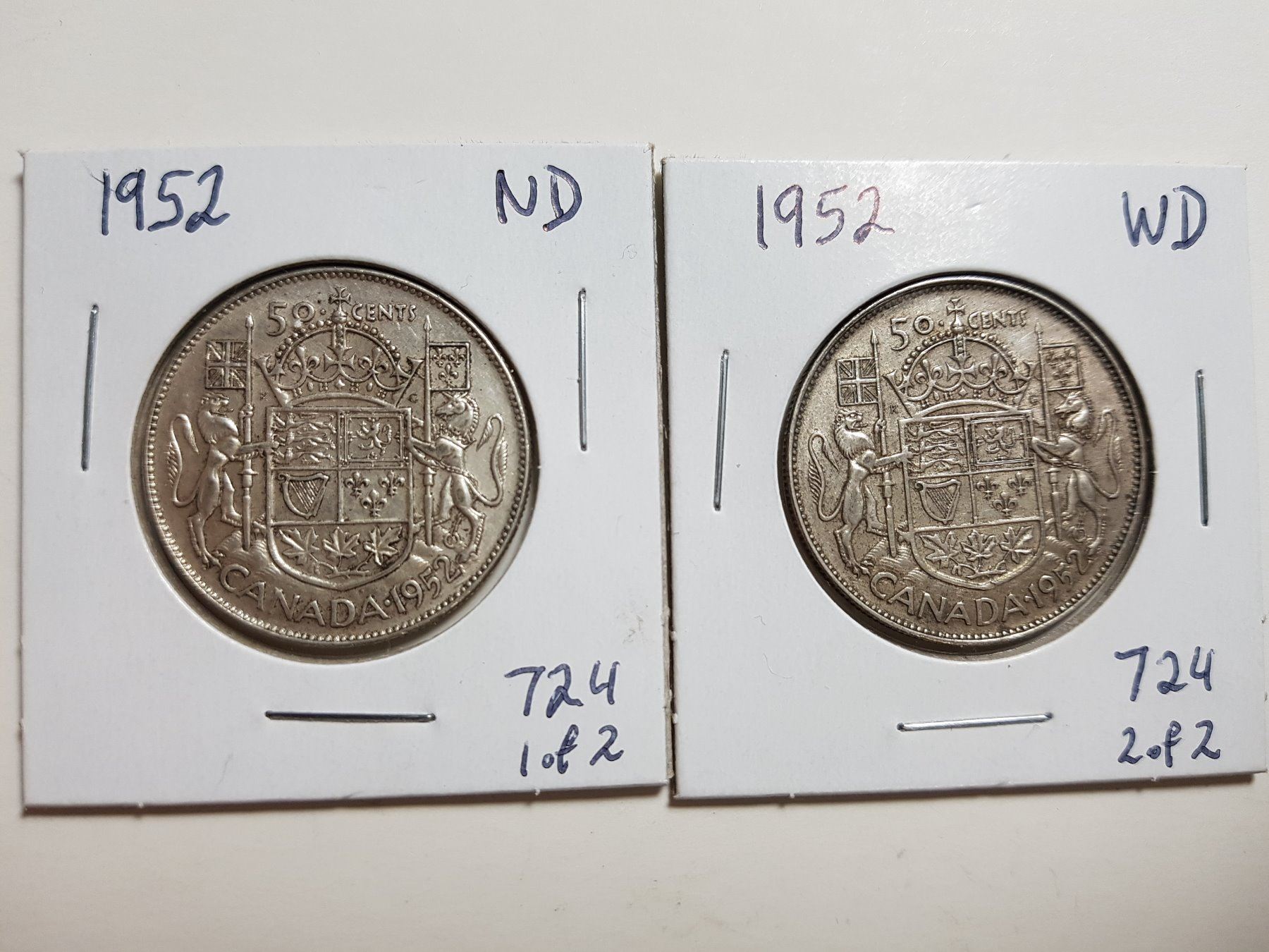 1952 NARROW AND WIDE DATE 50 CENT SILVER COINS