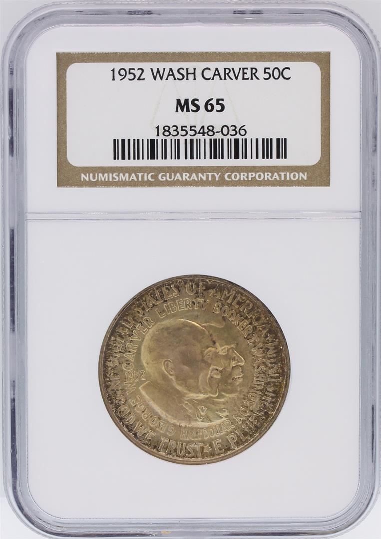 One 1952 NGC MS65 Washington/Carver Commemorative Silver Half Dollar. NGC Certified.