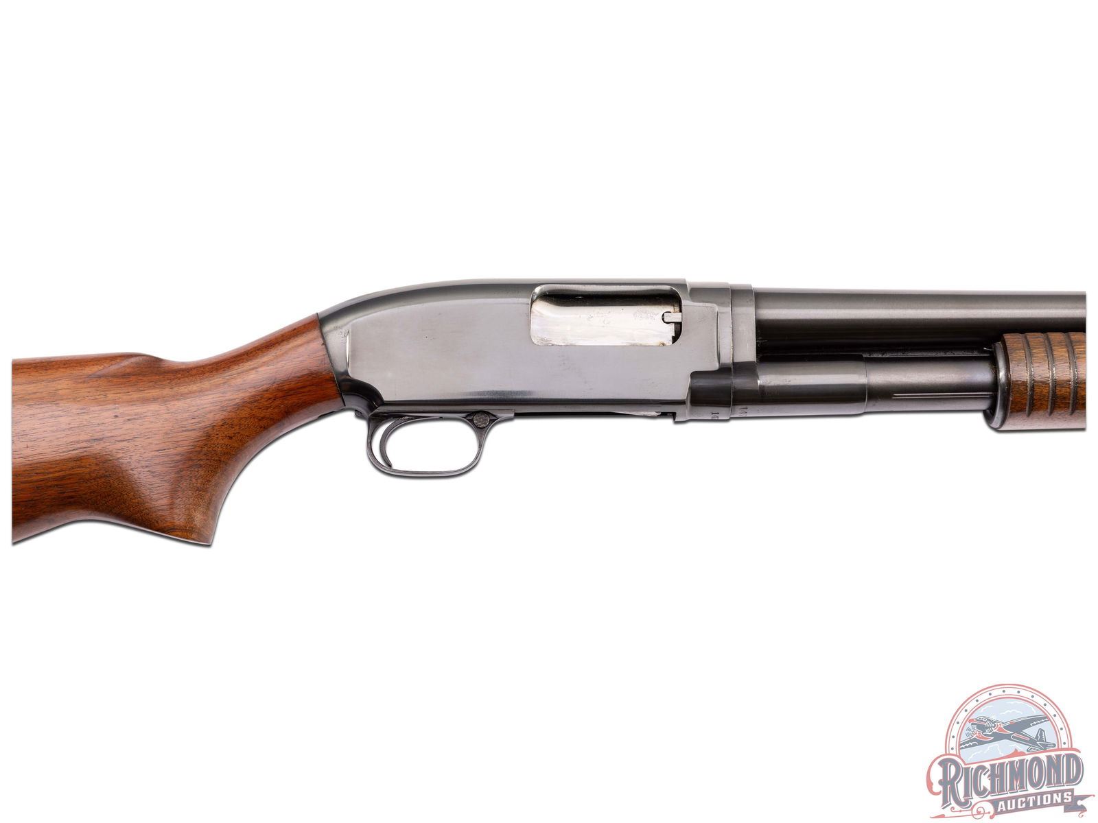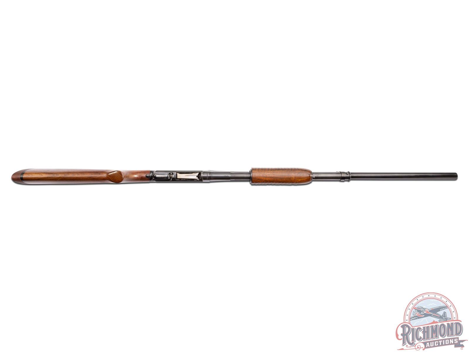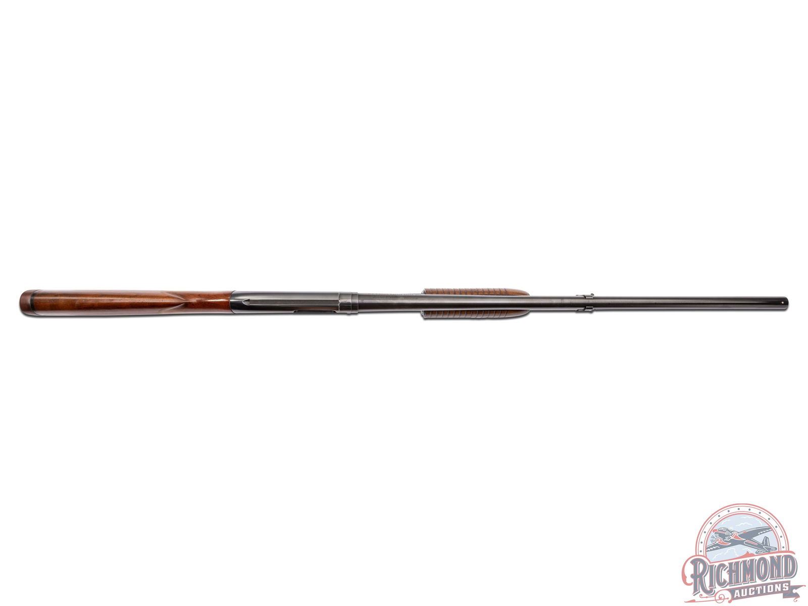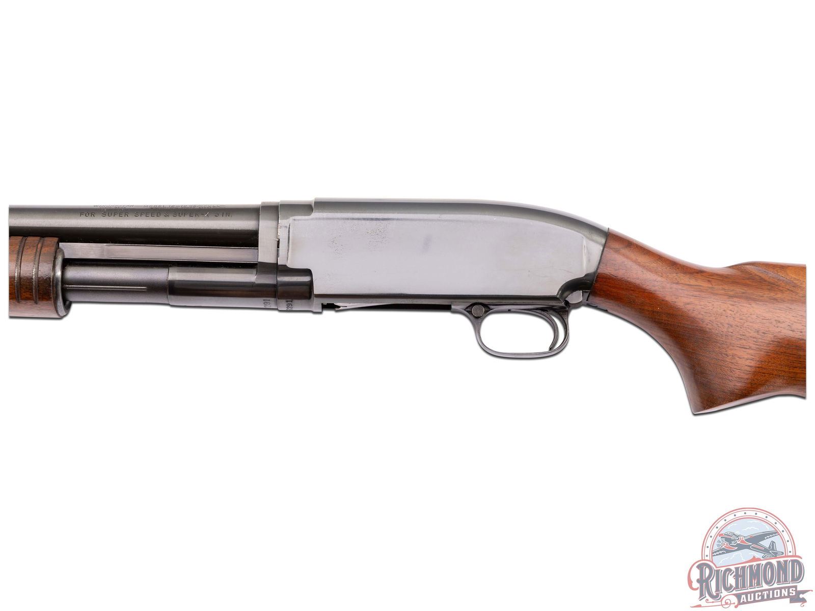 Manufactured in 1952. This great feather hunter features a 30" round barrel choked Full with a 3" chamber. All standard Heavy Duck roll marks and proof marks, stamped "FOR SUPER SPEED & SUPER -X". Matching serial numbers. Blued receiver with crossbolt safety. Smooth walnut pistol grip stock and 14-line ribbed slide forearm. Fitted with a factory black lined red hard rubber recoil pad. LOP: 13-5/8". DAC: 1-1/2". DAH: 2-1/4". CALIBER: 12 GA. S/N: 1477291. FFL STATUS: Curio & Relic.