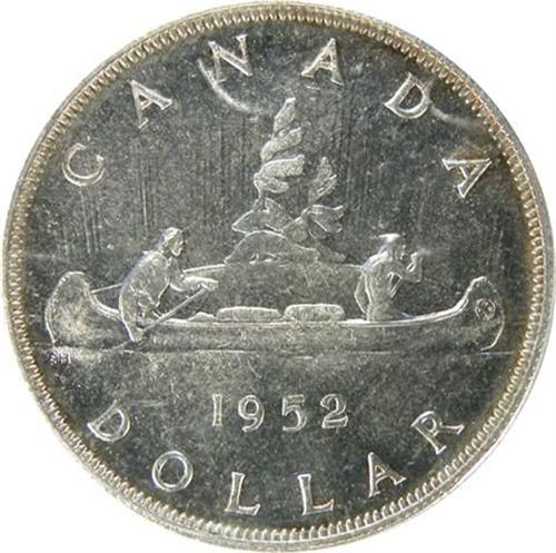 Canada Silver Dollar 1952 No Waterlines ICCS MS-64. Light amber rim toning