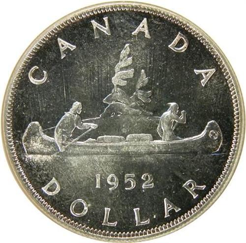 Canada Silver Dollar 1952 No Waterlines NGC PL-64. A superbly lustrous piece with light golden rim toning