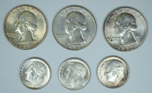 1952 PARTIAL MINT SET ORIGINAL GEMS; 1952 PDS QUARTERS,DIMES,CENTS,NICKELS AND