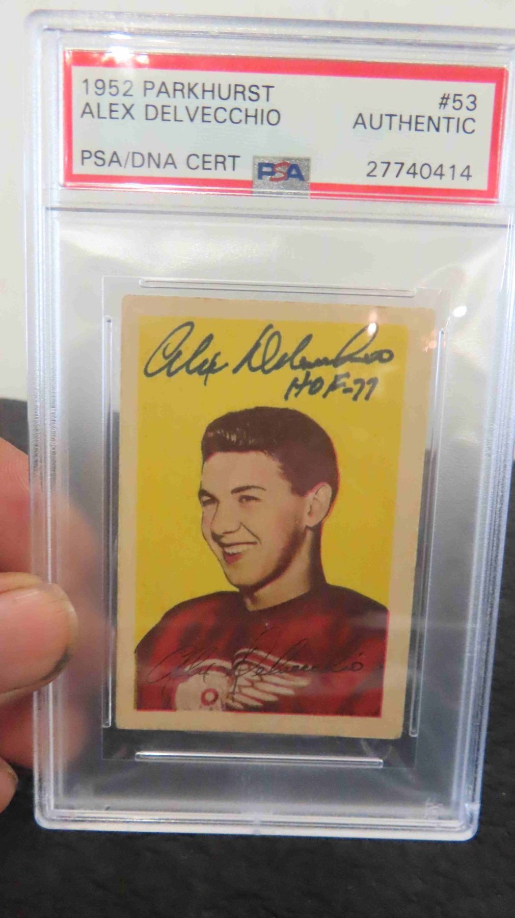 1952 Parkhurst Alex Delvecchio Signed Card PSA/DNA Certified