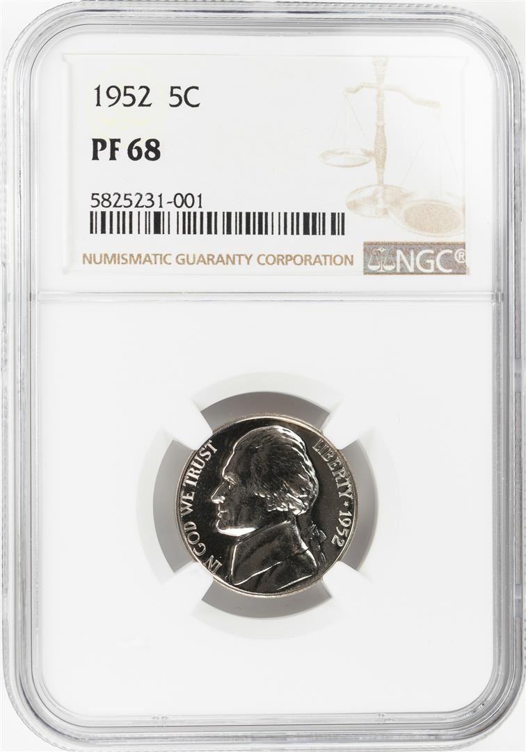 One 1952 Proof Jefferson Nickel Coin NGC PF68. NGC Certified.
