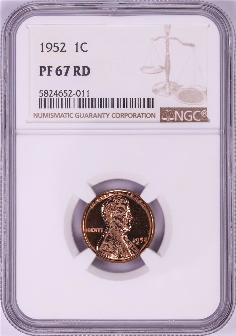 One 1952 Proof Lincoln Wheat Cent Coin NGC PF67RD. NGC Certified.