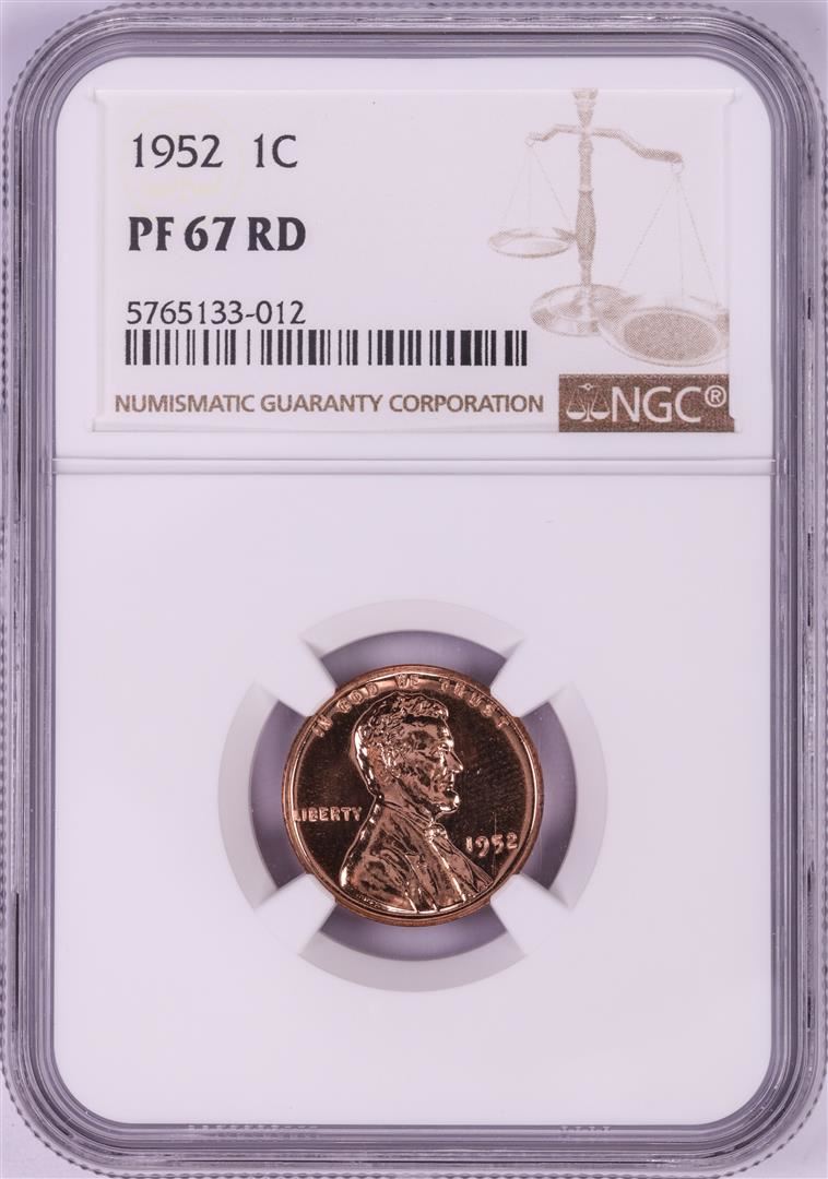 One 1952 Proof Lincoln Wheat Cent Coin NGC PF67RD. NGC Certified.