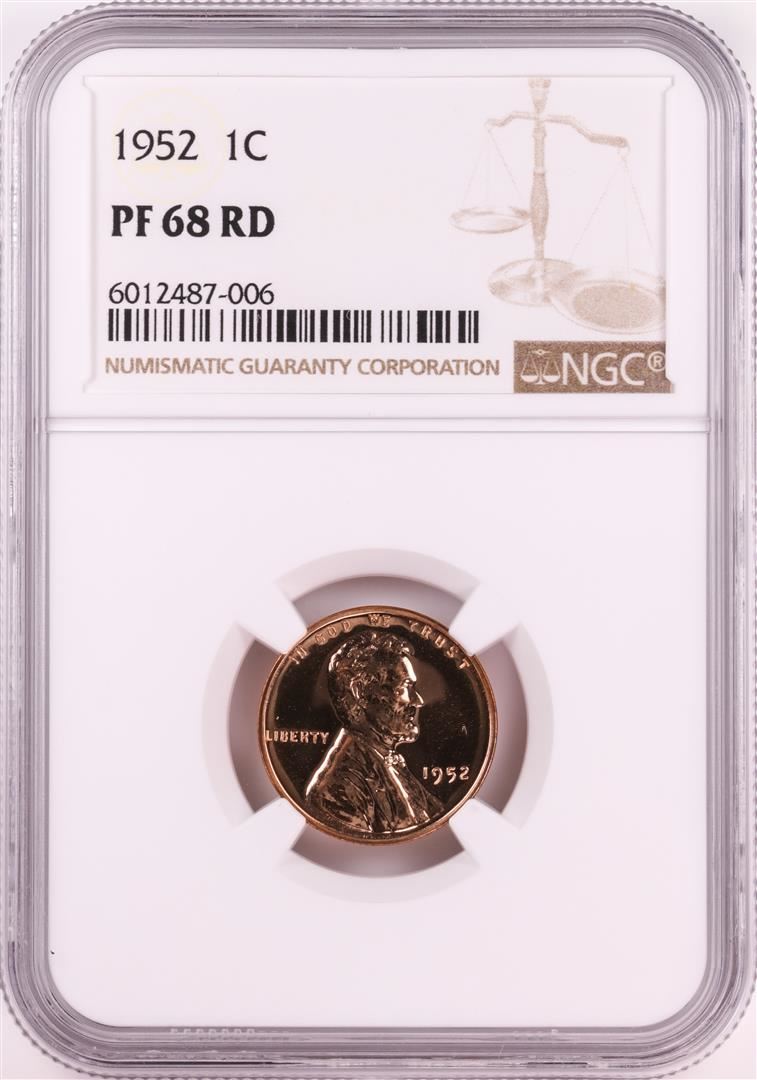 One 1952 Proof Lincoln Wheat Cent Coin NGC PF68RD. NGC Certified.