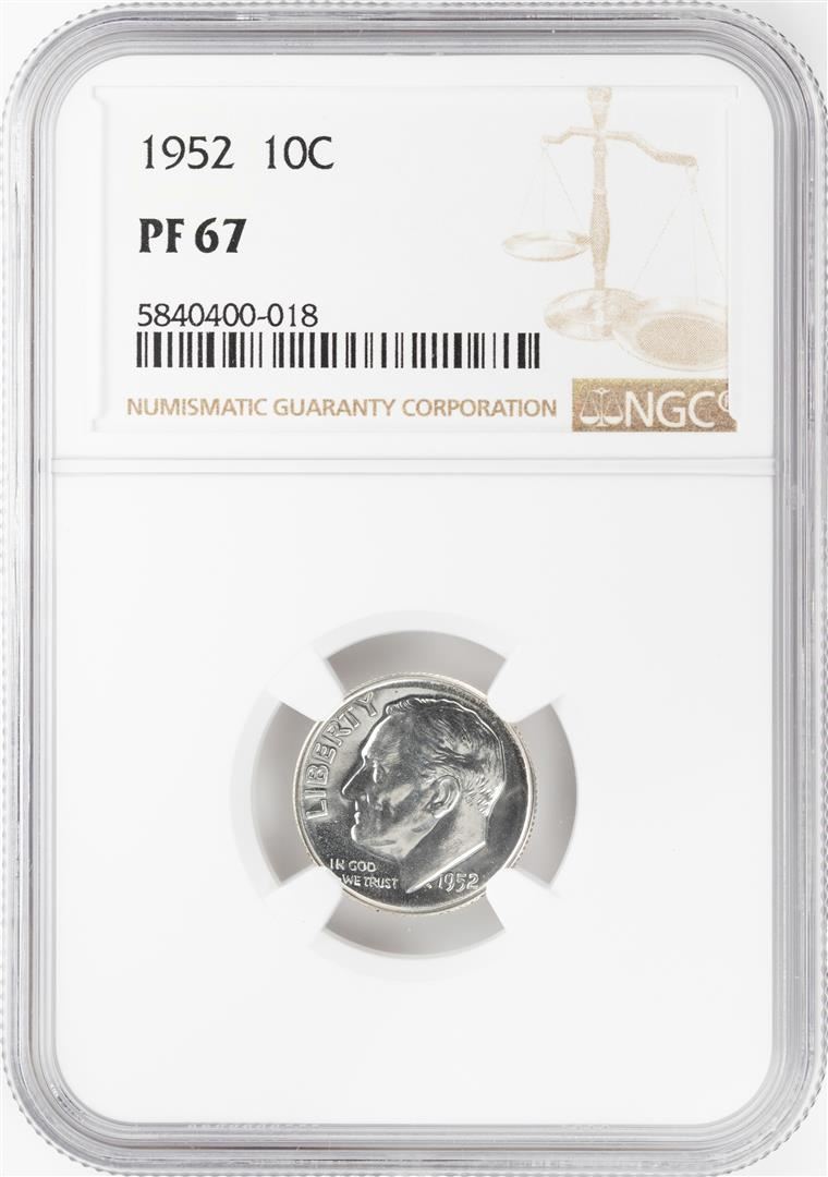 One 1952 Proof Roosevelt Dime Coin NGC PF67. NGC Certified.