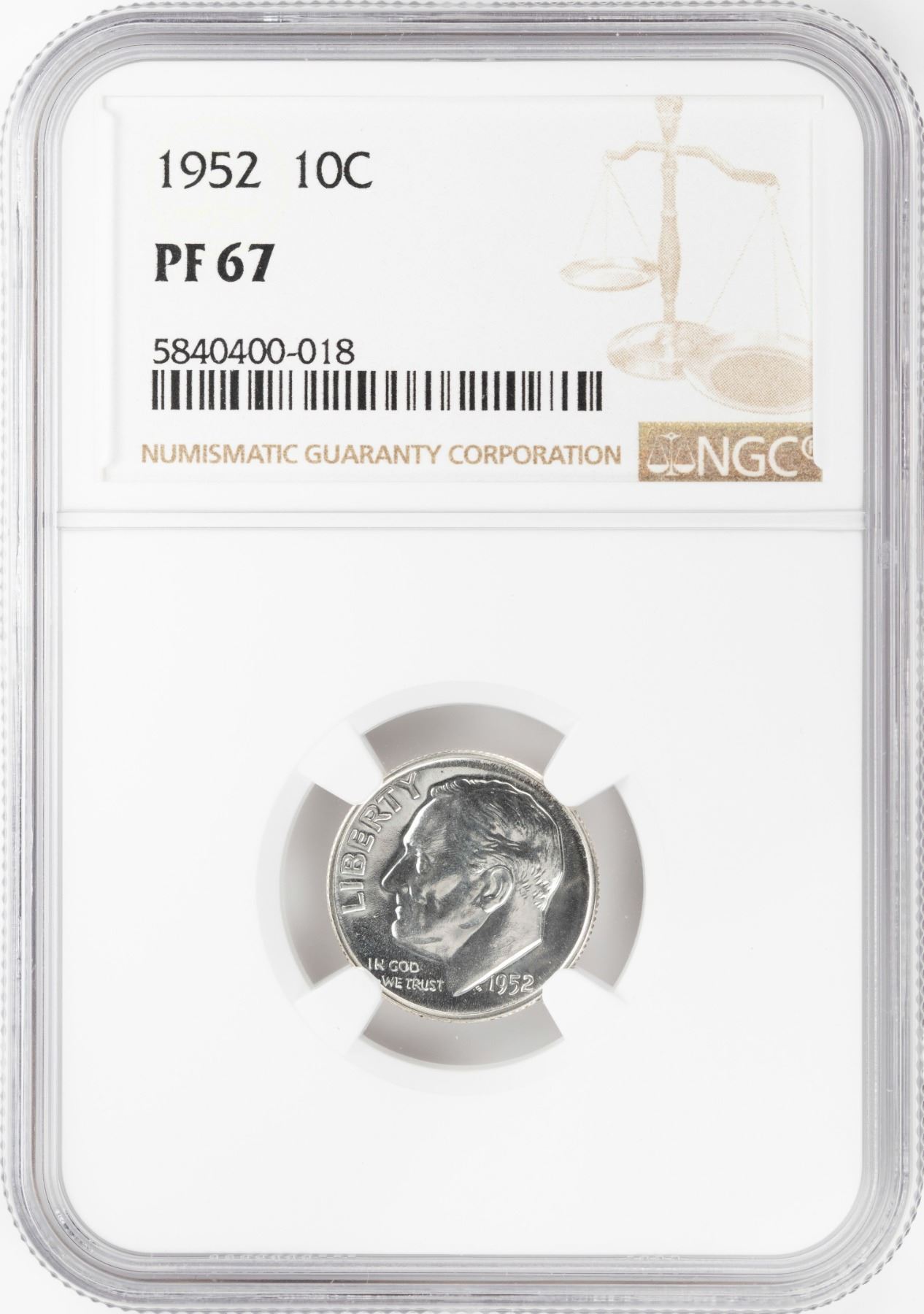 One 1952 Proof Roosevelt Dime Coin NGC PF67.