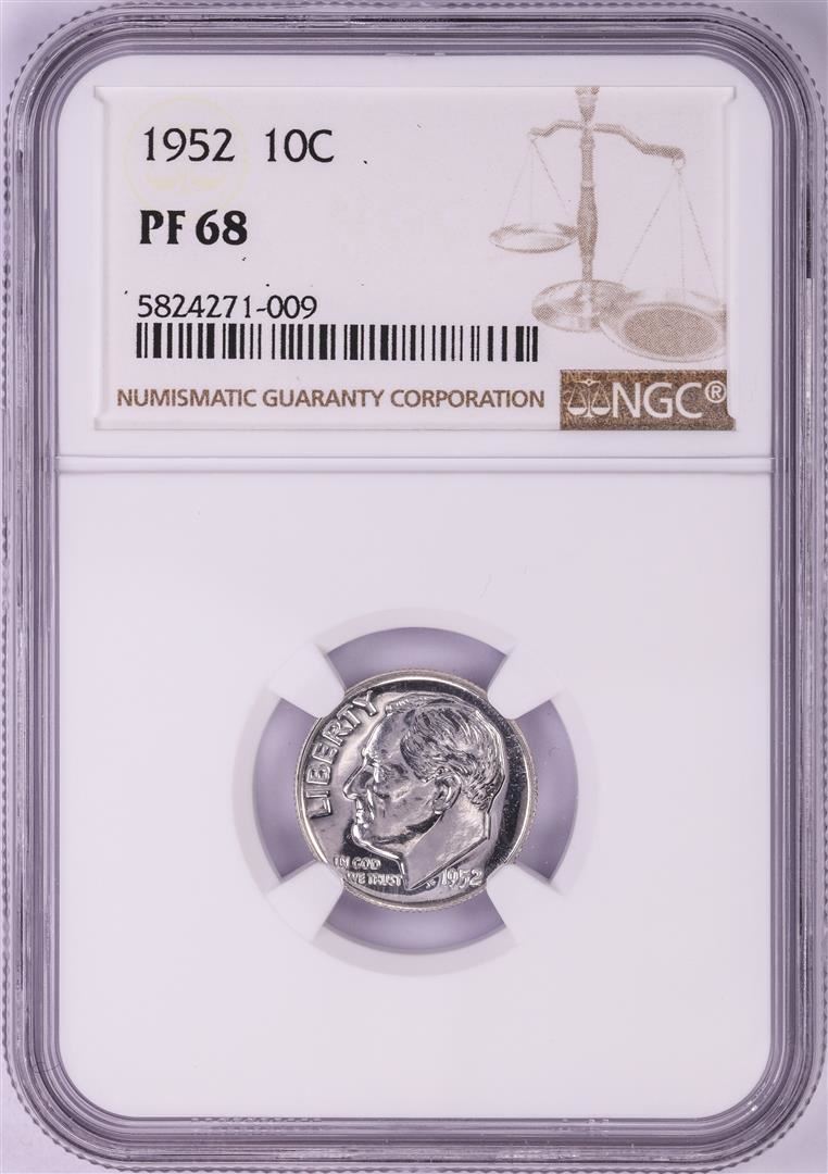 One 1952 Proof Roosevelt Dime Coin NGC PF68. NGC Certified.