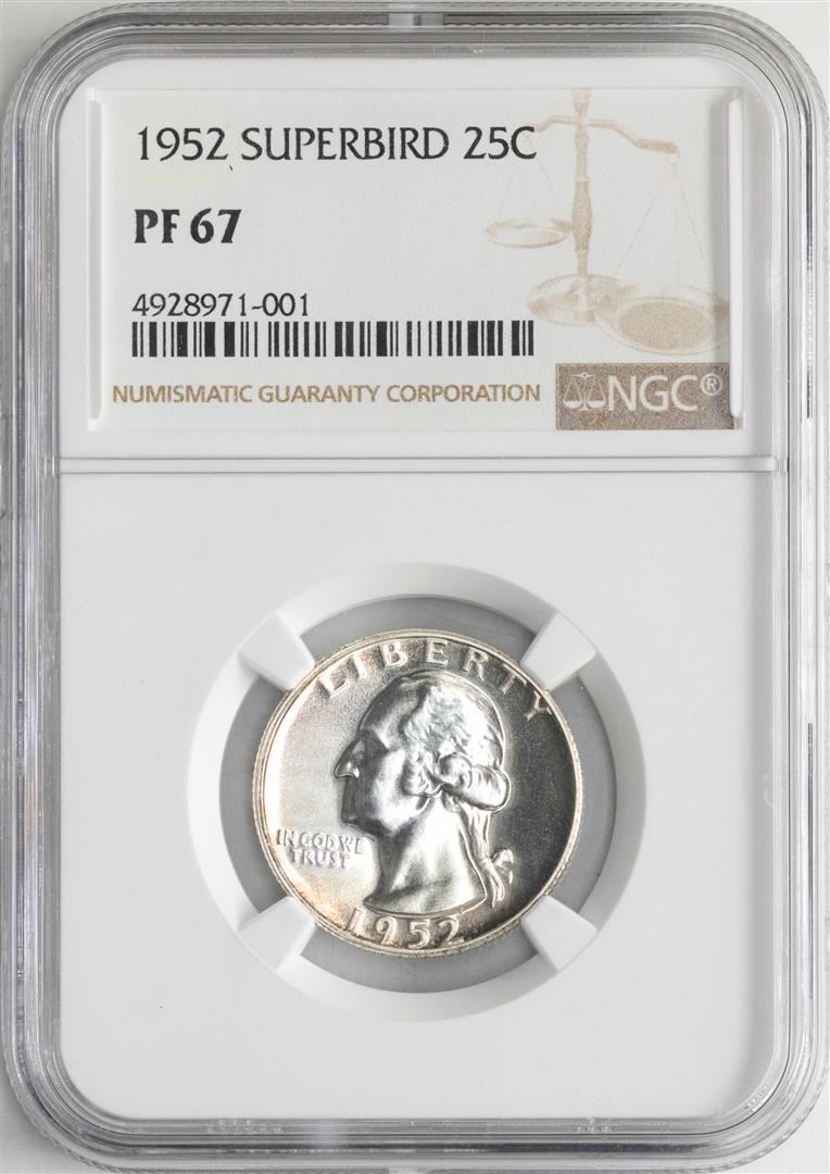 One 1952 Proof Superbird Washington Quarter Coin NGC PF67. NGC Certified.