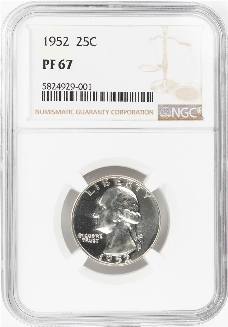 One 1952 Proof Washington Quarter Coin NGC PF67. NGC Certified.