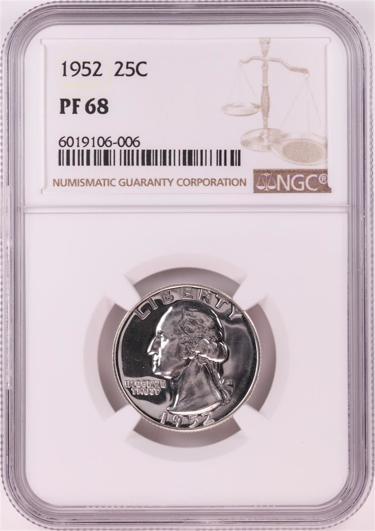 One 1952 Proof Washington Quarter Coin NGC PF68. NGC Certified.