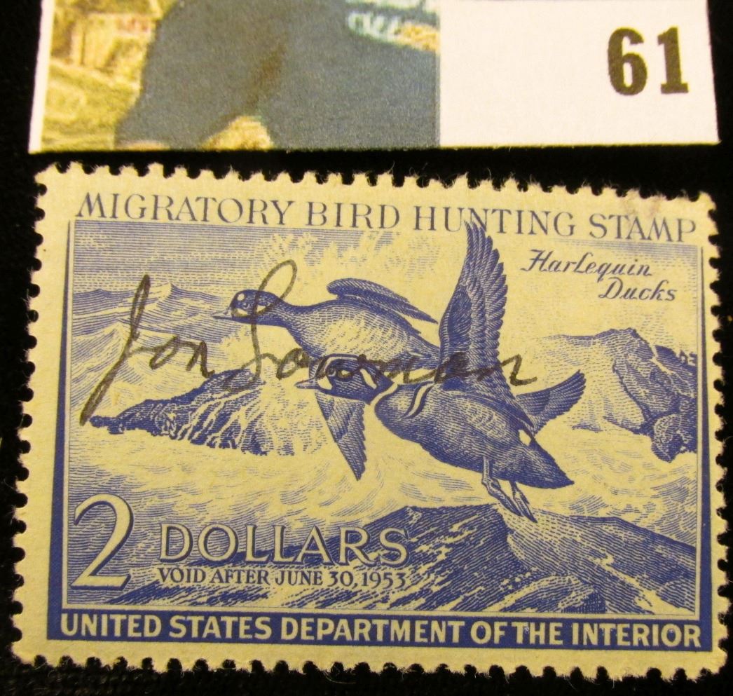 1952 RW19 U.S. Federal Migratory Waterfowl Stamps, Signed, OG, VF.