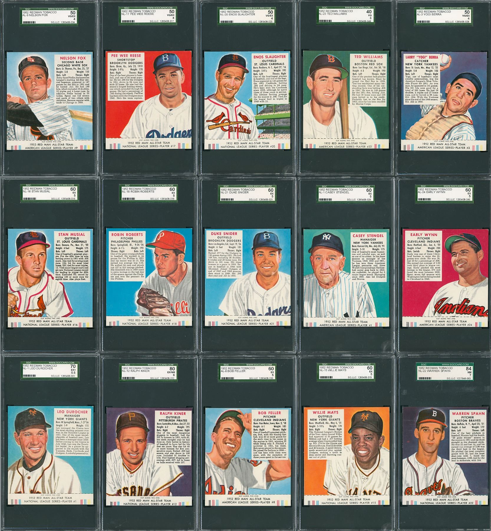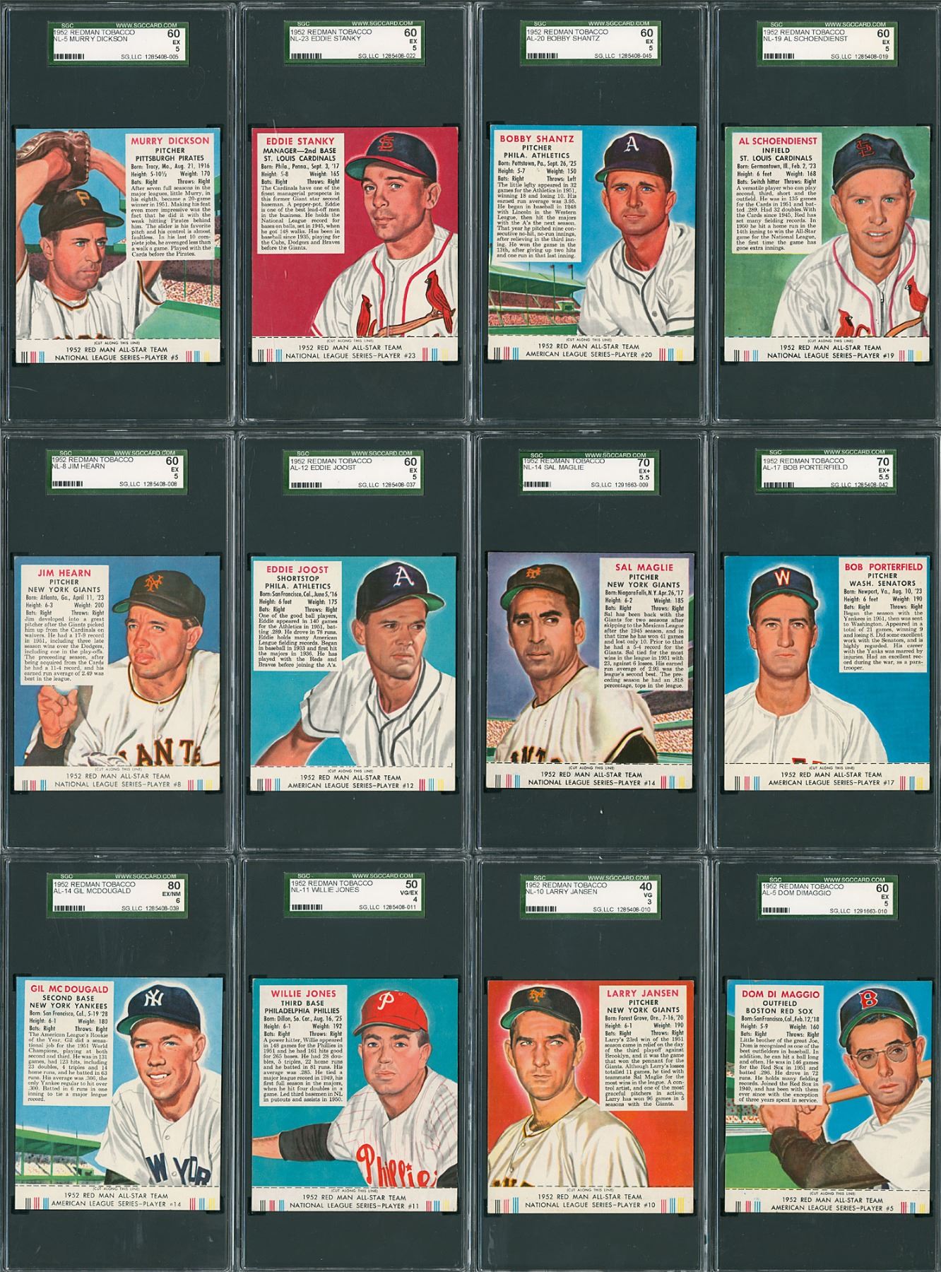 Completely graded 1952 Red Man tobacco set with tabs, all cards graded by SGC.