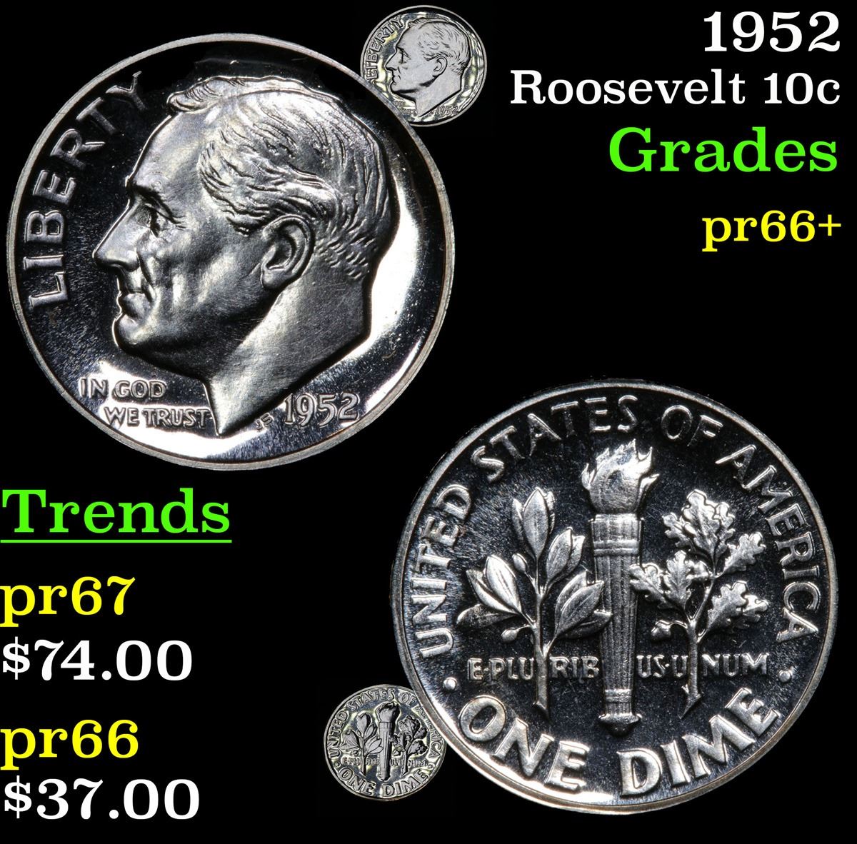 1952 Roosevelt Dime 10c Grades GEM++ Proof.