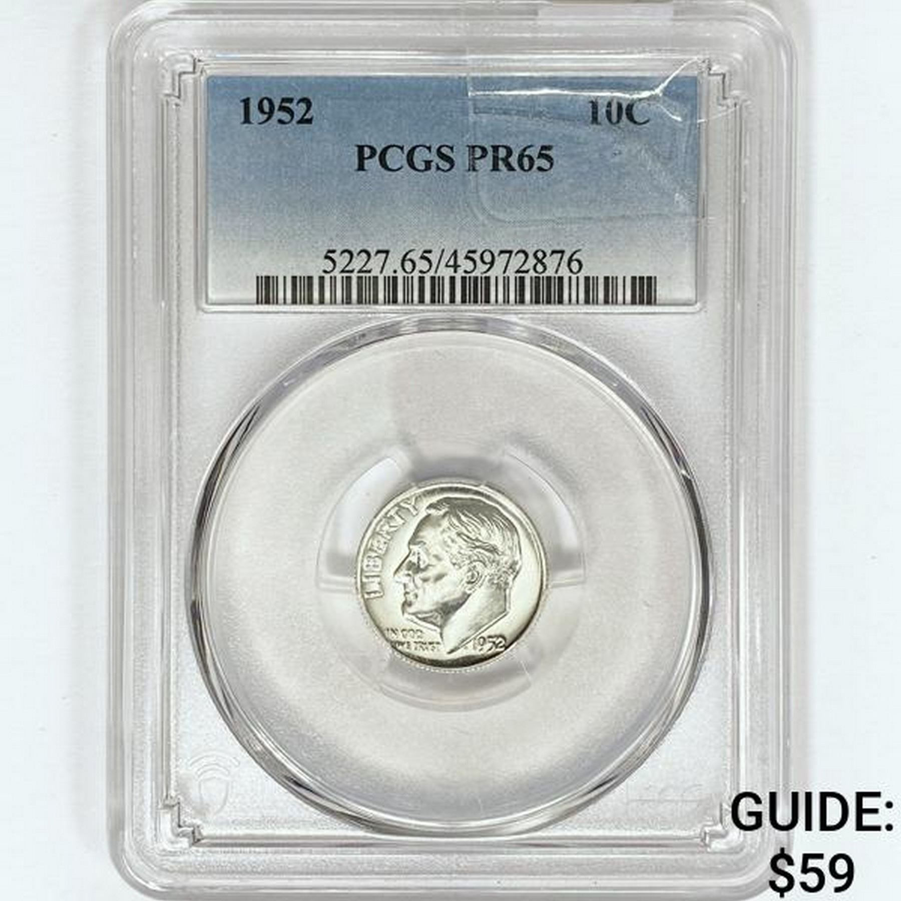 1952 Roosevelt Dime PCGS PR65