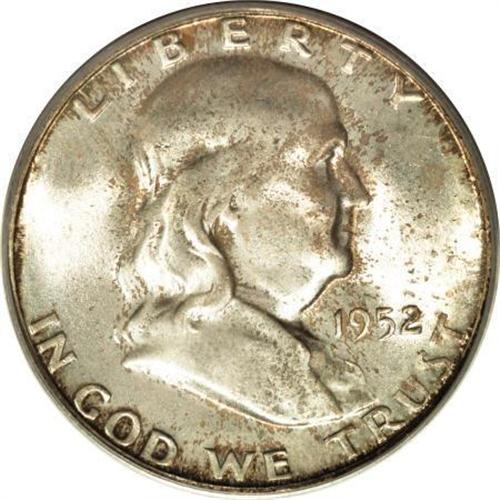 <B>1952-S 50C MS66 Full Bell Lines PCGS.</B></I> The obverse of this amazing piece has splashes of golden-rose over light silver luster. The reverse has rich gold, rose, russet, and green toning intermingled across the surface. Full Bell Line examples of this date are infrequently seen and highly desirable in all numerical grades. Among the finest certified. Population: 26 in 66 Full Bell Lines, 0 finer (2/08).<BR><BR><b>Shipping:</b> Coins & Currency (<a target="_blank" href="http://www.heritageauctions.com/common/shipping.php">view shipping information</a>)