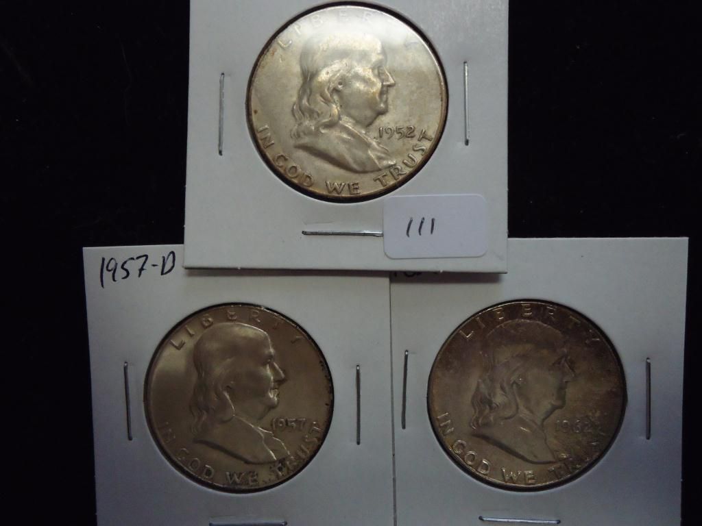 1952-S,57 & 62 (PF) FRANKLIN HALF DOLLARS
